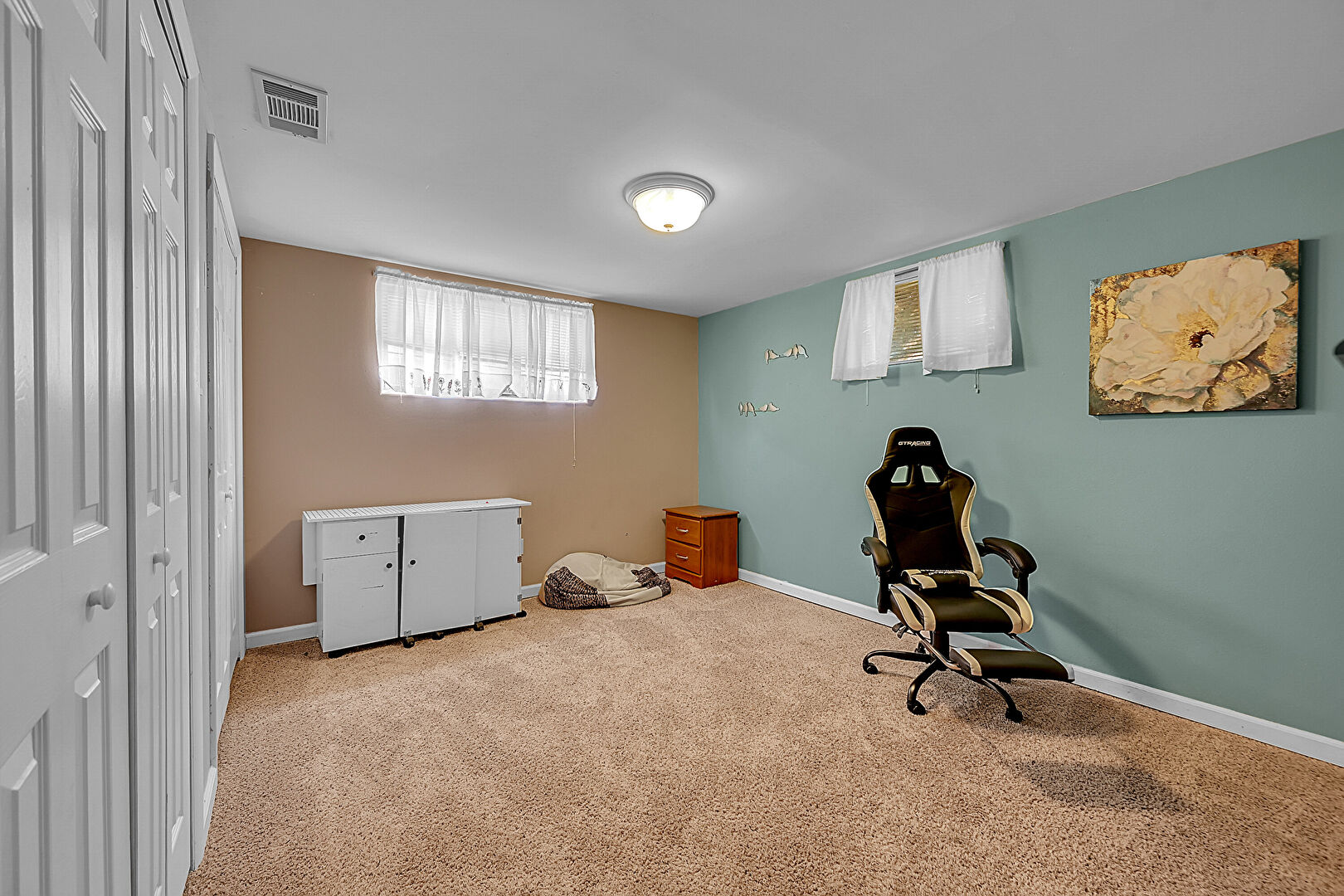 Basement, Carpet, Drywall, Natural Light, Vent, Baseboards Wall