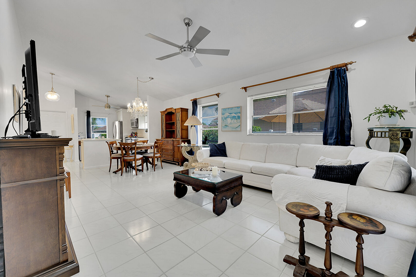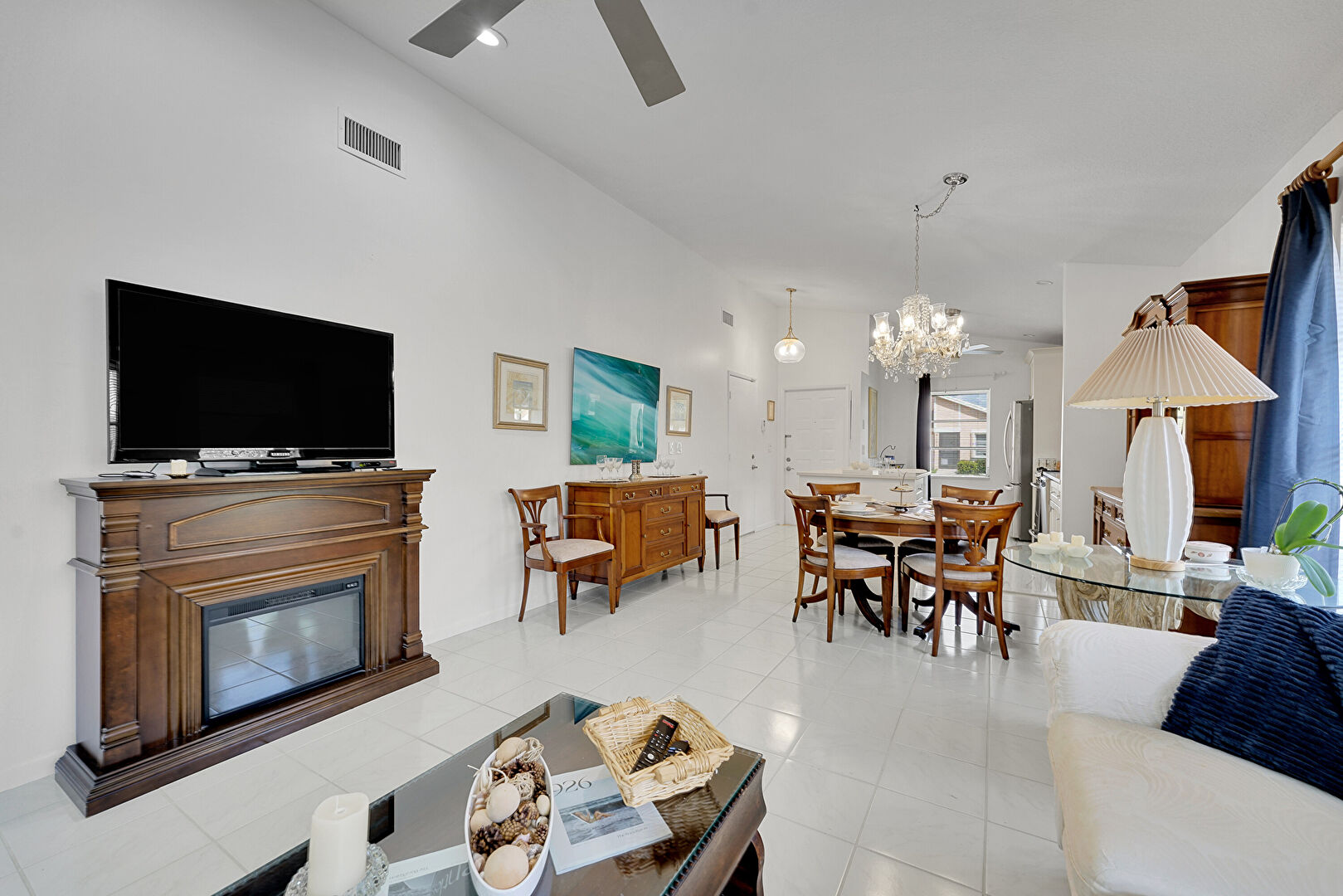 Baseboards Wall, Ceiling Fan, Drywall, Fireplace, High Ceiling, Natural Light, Notable Chandelier, Recessed Lighting, Sunroom, Textured Ceiling, Tile Floor, Vaulted Ceiling, Vent, Drywall, High Ceiling, Tile Floor