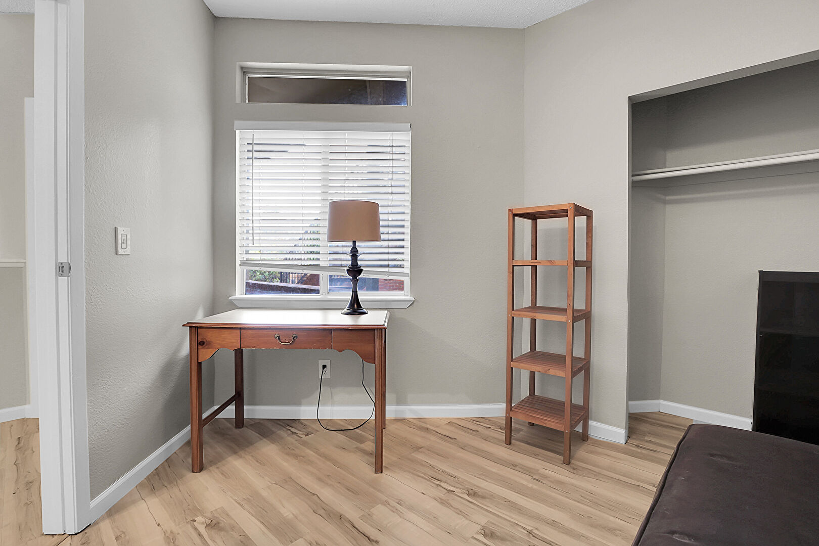 Baseboards Wall, Ceiling Fan, Drywall, Natural Light, Textured Ceiling, Wood Finish Floor