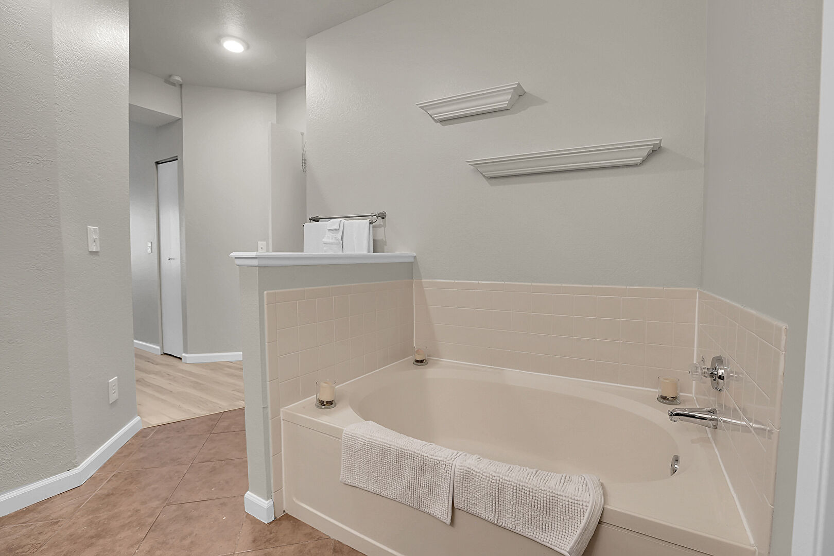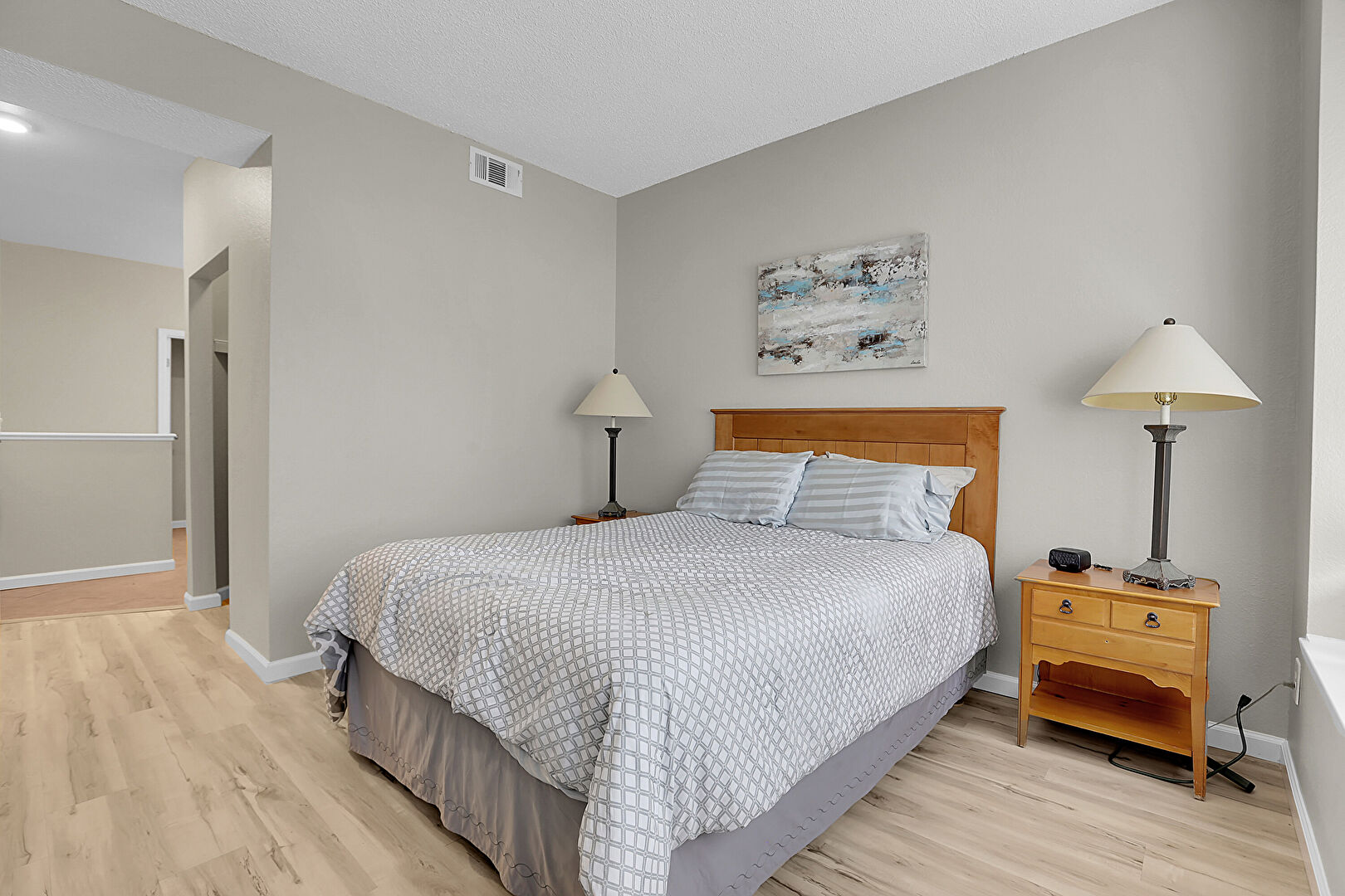 Baseboards Wall, Drywall, Ensuite Bathroom, Natural Light, Textured Ceiling, Wood Finish Floor, Drywall, Vent