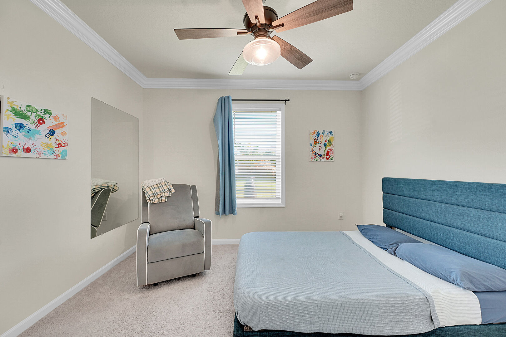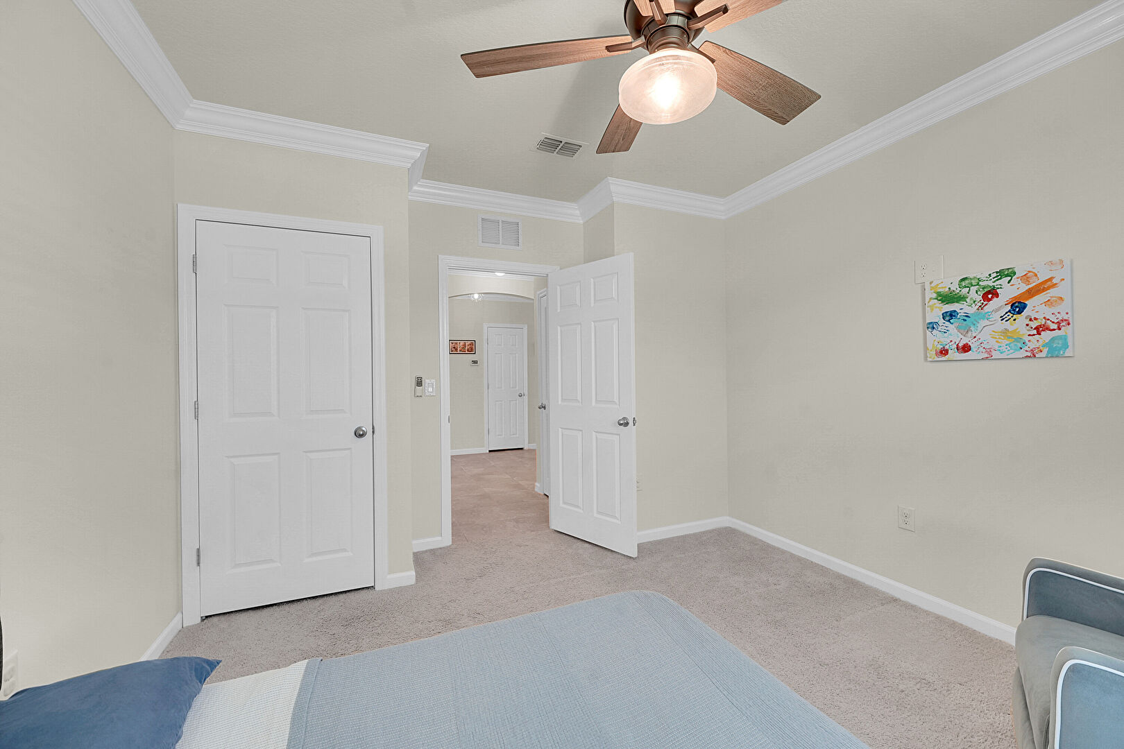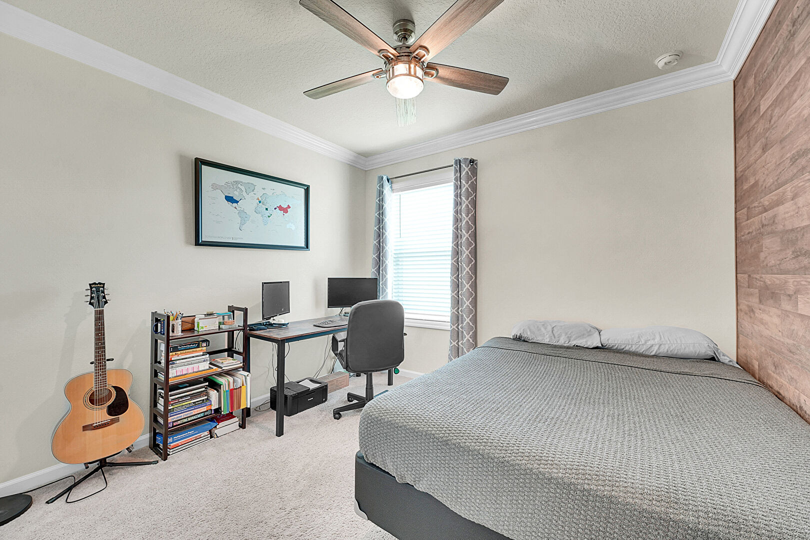 Baseboards Wall, Carpet, Ceiling Fan, Crown Molding, Drywall, Natural Light, Office Area, Smoke Carbon Monoxide Detector, Textured Ceiling, Vent, Wood Wall, Carpet, Crown Molding, Drywall