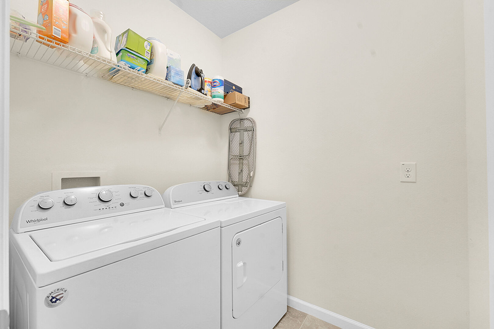 Baseboards Wall, Drywall, Tile Floor, Washer Hookup, Laundry