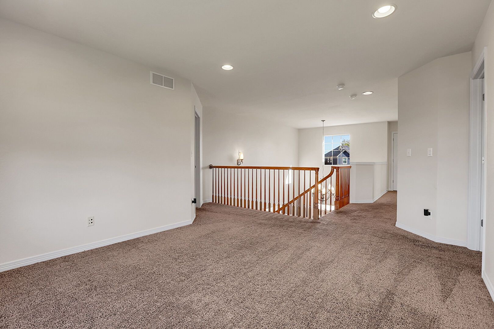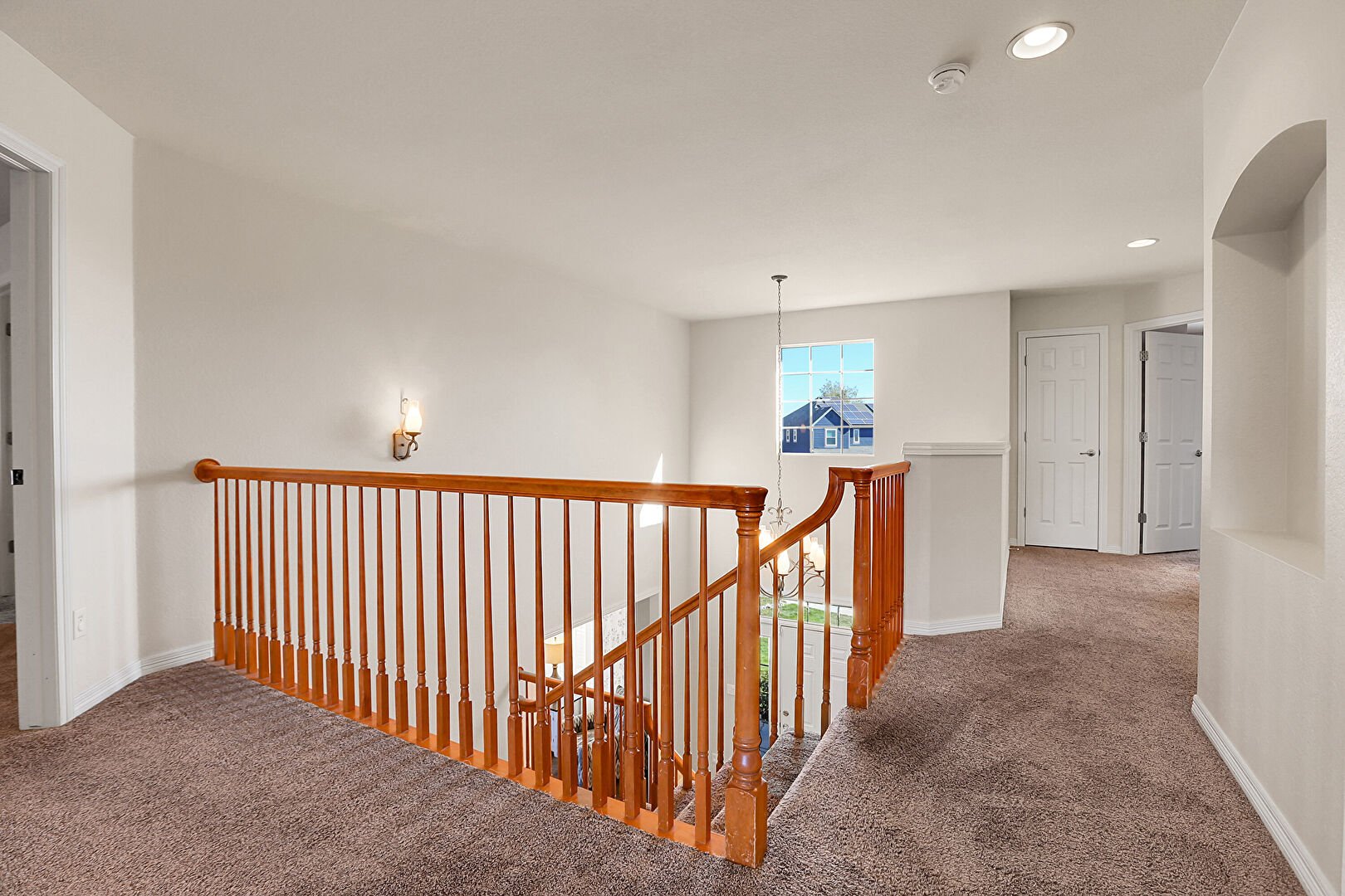 Arched Walkways, Baseboards Wall, Carpet, Ceiling Fan, Crown Molding, Drywall, Loft, Natural Light, Notable Chandelier, Recessed Lighting, Smoke Carbon Monoxide Detector, Stairs, Vent, Baseboards Wall, Natural Light, Recessed Lighting, Upstairs Landing