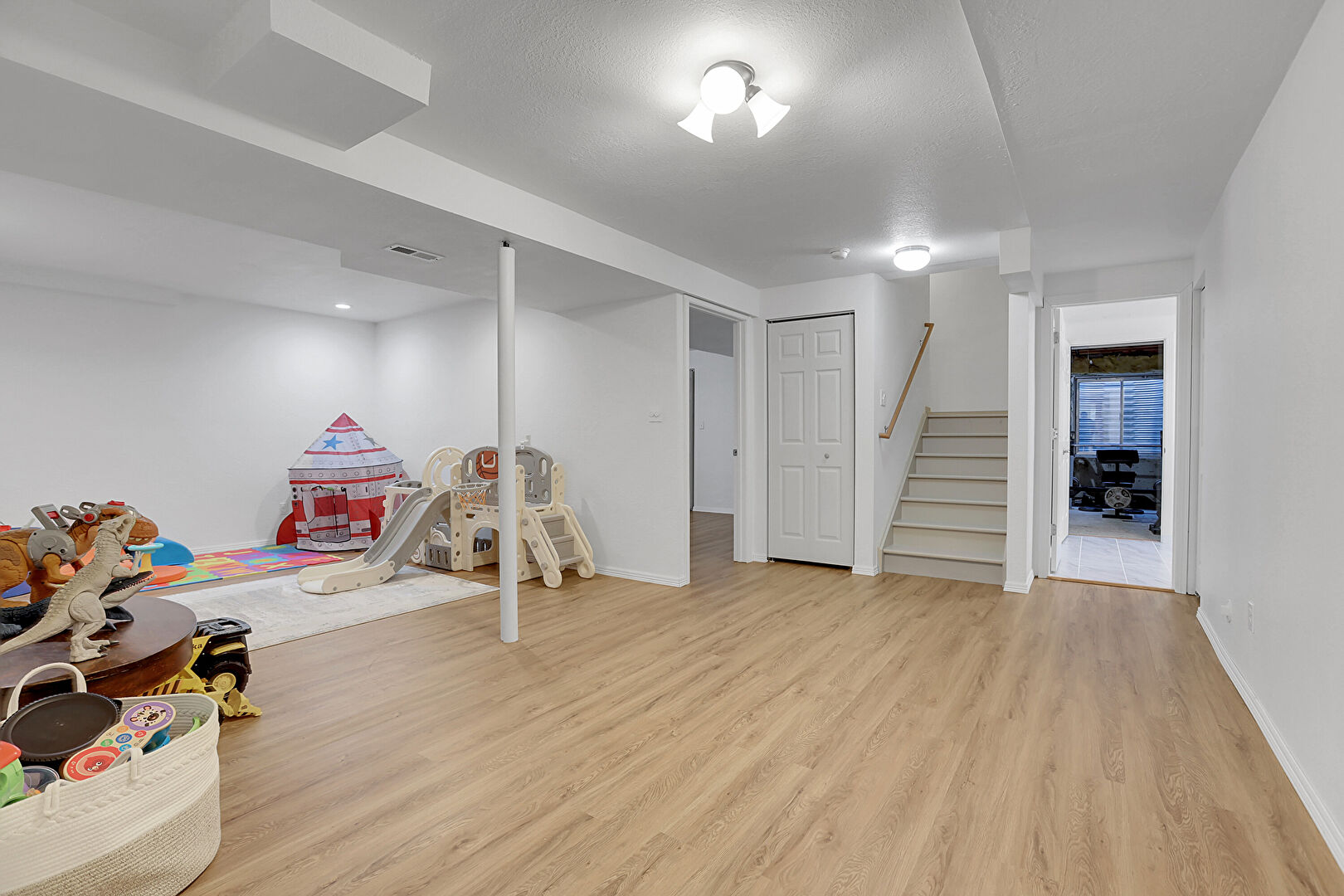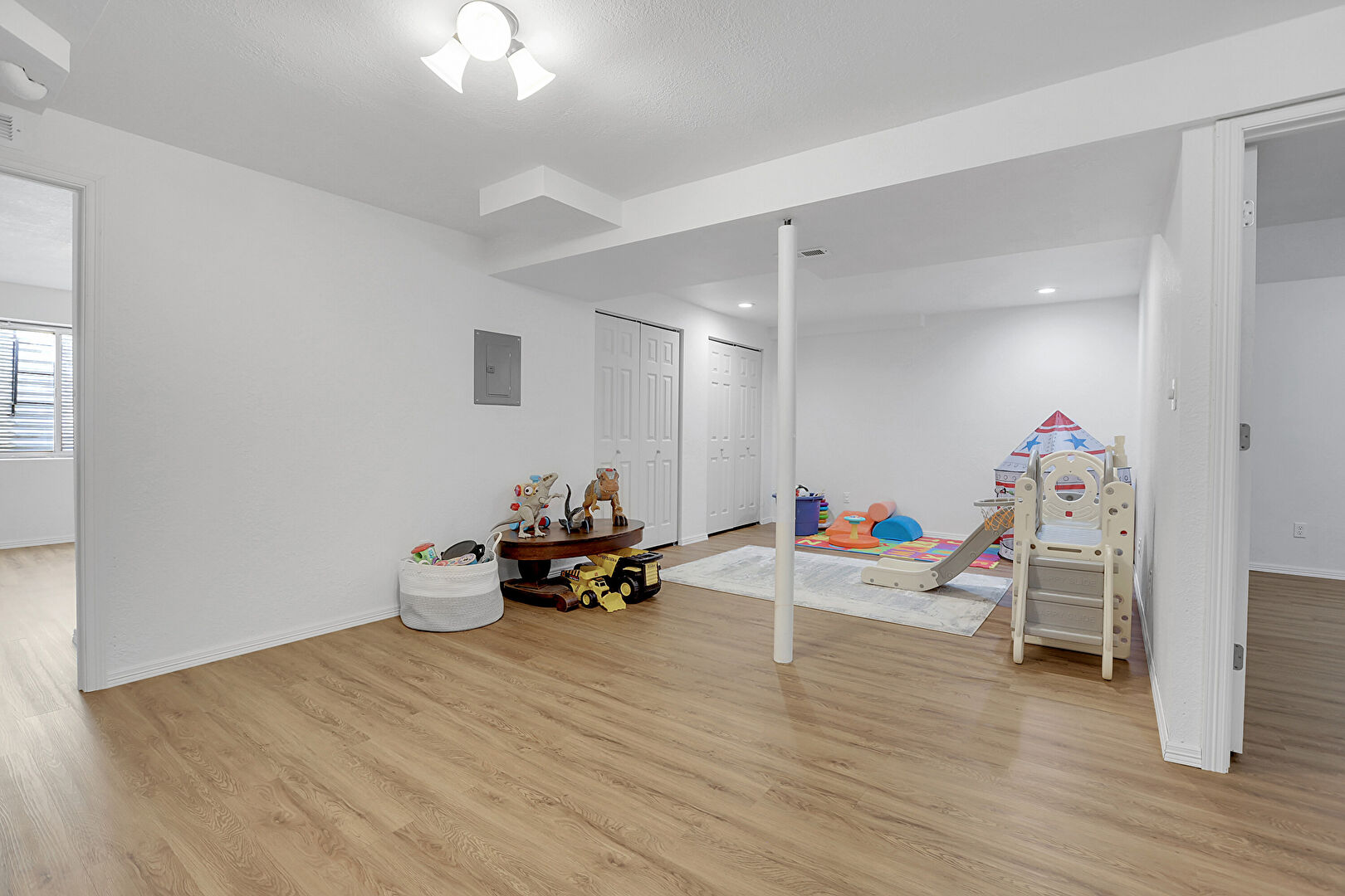 Baseboards Wall, Basement, Drywall, Electric Panel, Natural Light, Vent, Wood Finish Floor, Textured Ceiling, Wood Finish Floor