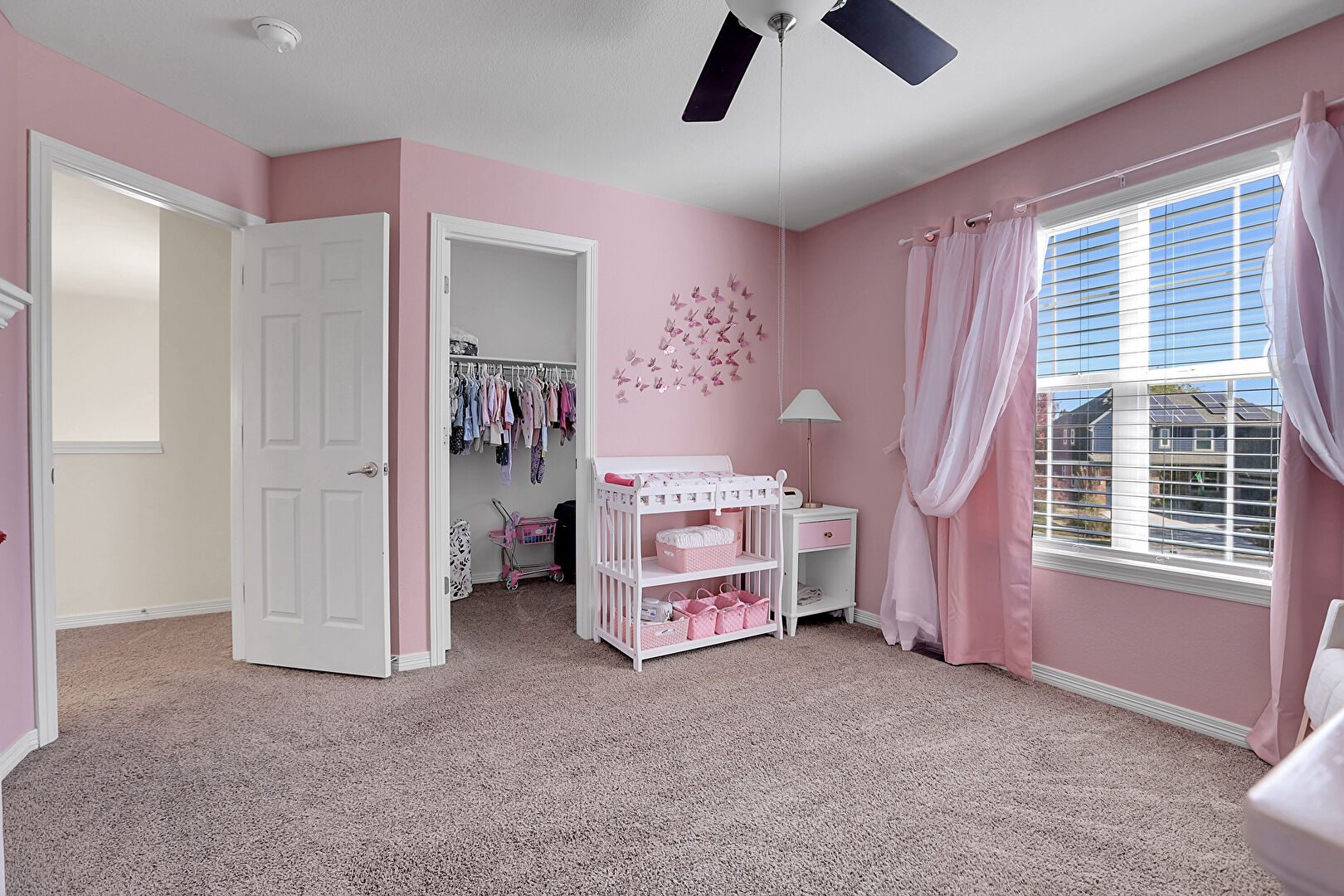 Baseboards Wall, Carpet, Ceiling Fan, Closet, Drywall, Natural Light, Nursery, Scuttle, Smoke Carbon Monoxide Detector, Textured Ceiling, Tray Ceiling, Vent, Walk In Closet, Wood Finish Floor, Baseboards Wall, Carpet, Drywall, Natural Light, Nursery, Wood Finish Floor