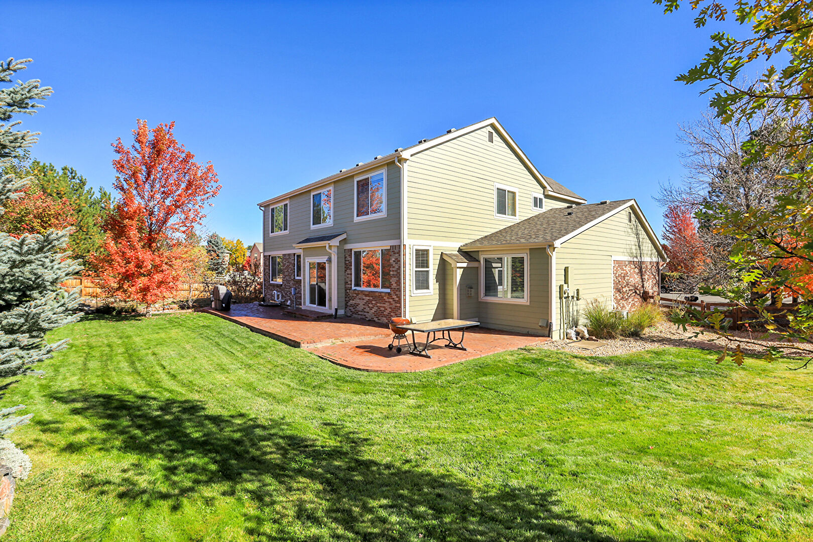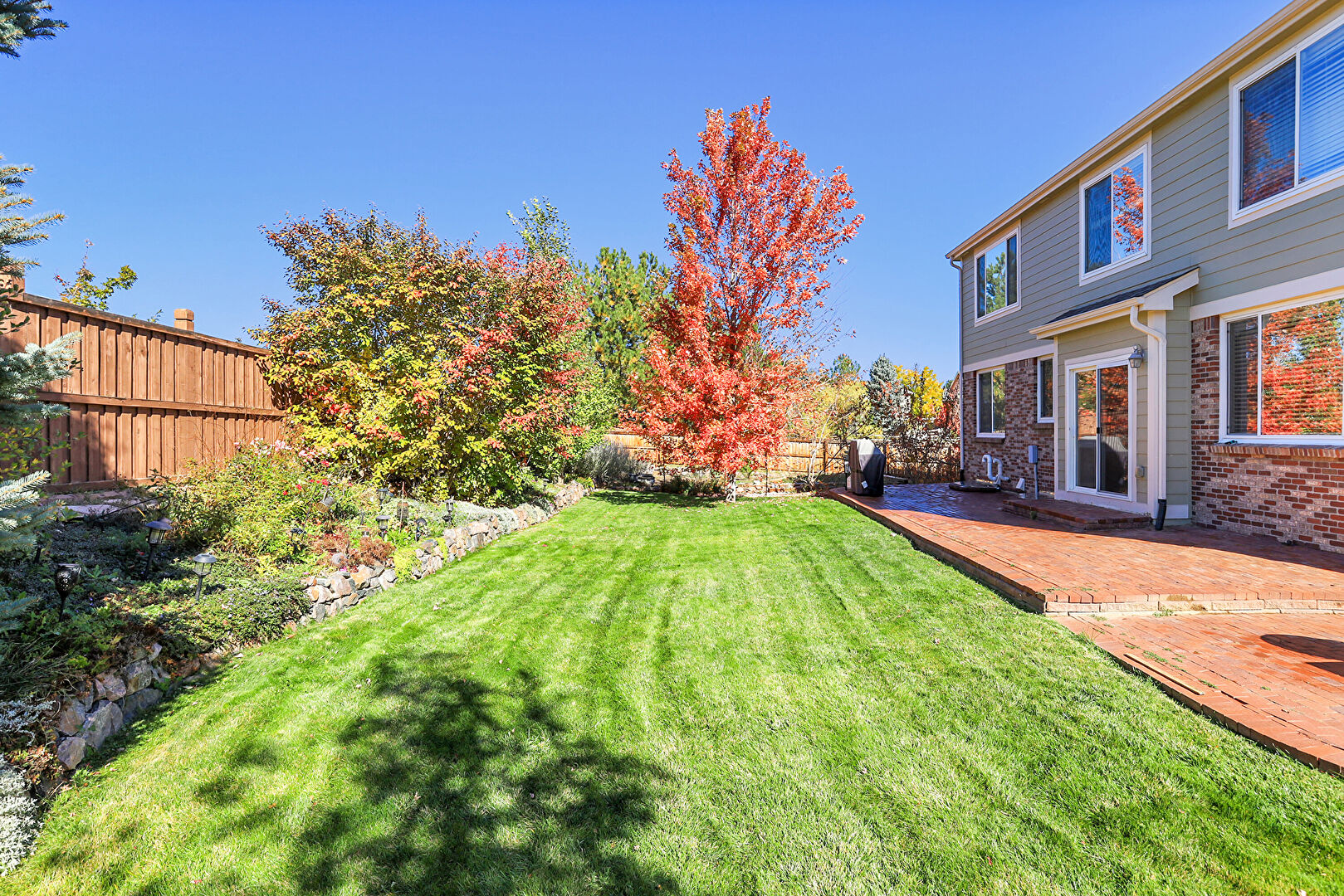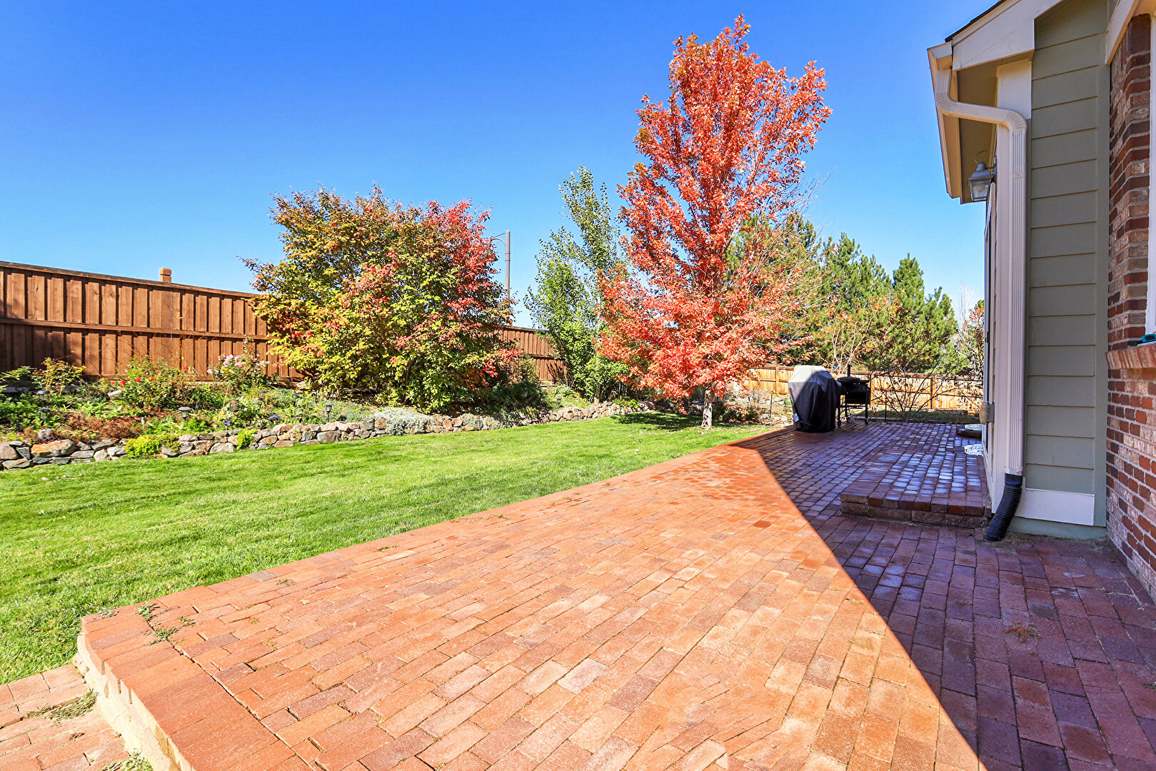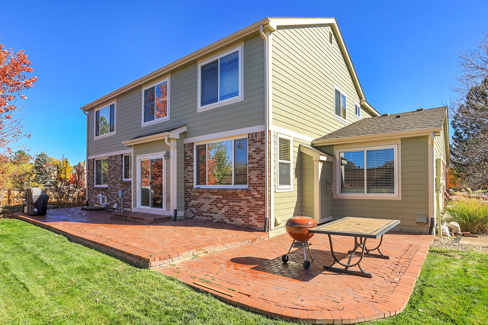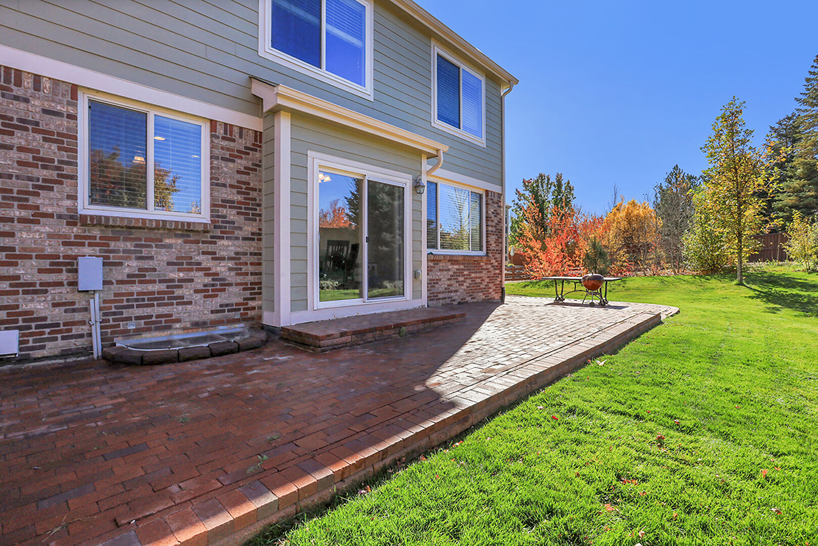 Brick Siding, Deck, Downspout, Gutters, Horizontal Siding, Lawn, Patio, Concrete Foundation, Downspout