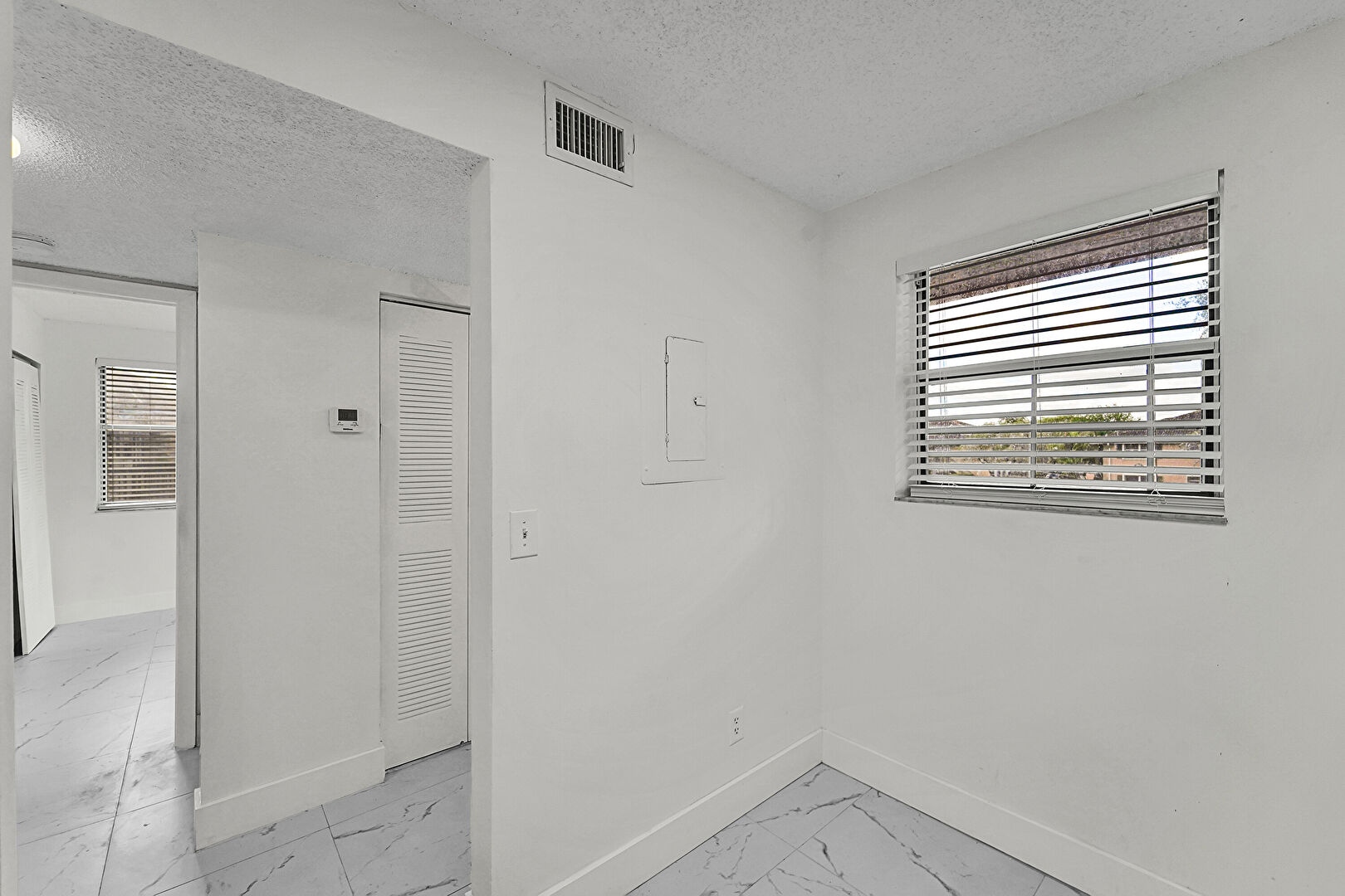 Baseboards Wall, Drywall, Electric Panel, Marble Finish Floor, Natural Light, Pass Through Window, Shaker Cabinets, Stone Countertops, Textured Ceiling, Vent, Drywall, Marble Finish Floor, Shaker Cabinets