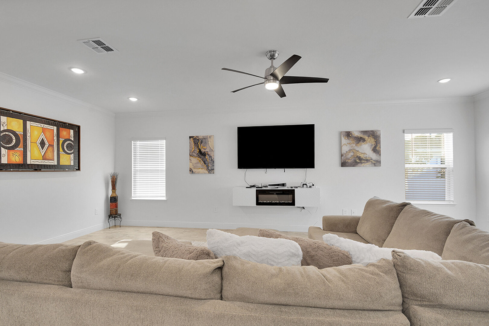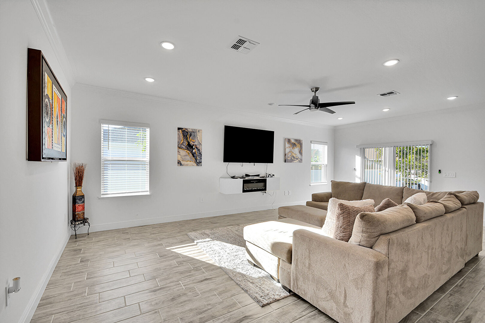 Baseboards Wall,  Ceiling Fan,  Crown Molding,  Drywall,  Natural Light,  Recessed Lighting,  Vent,  Wood Finish Floor, Ceiling Fan, Drywall, Recessed Lighting
