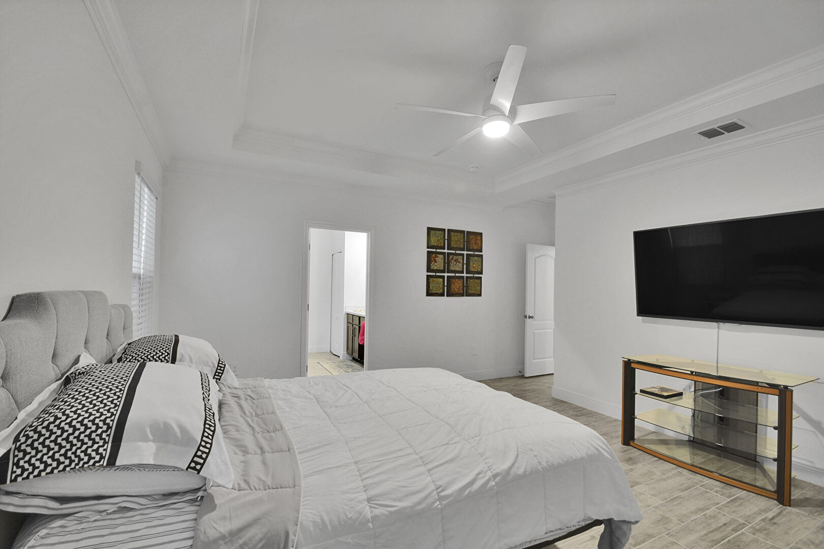 Baseboards Wall,  Ceiling Fan,  Crown Molding,  Drywall,  Ensuite Bathroom,  Natural Light,  Tray Ceiling,  Vent,  Wood Finish Floor, Natural Light, Tray Ceiling, Vent