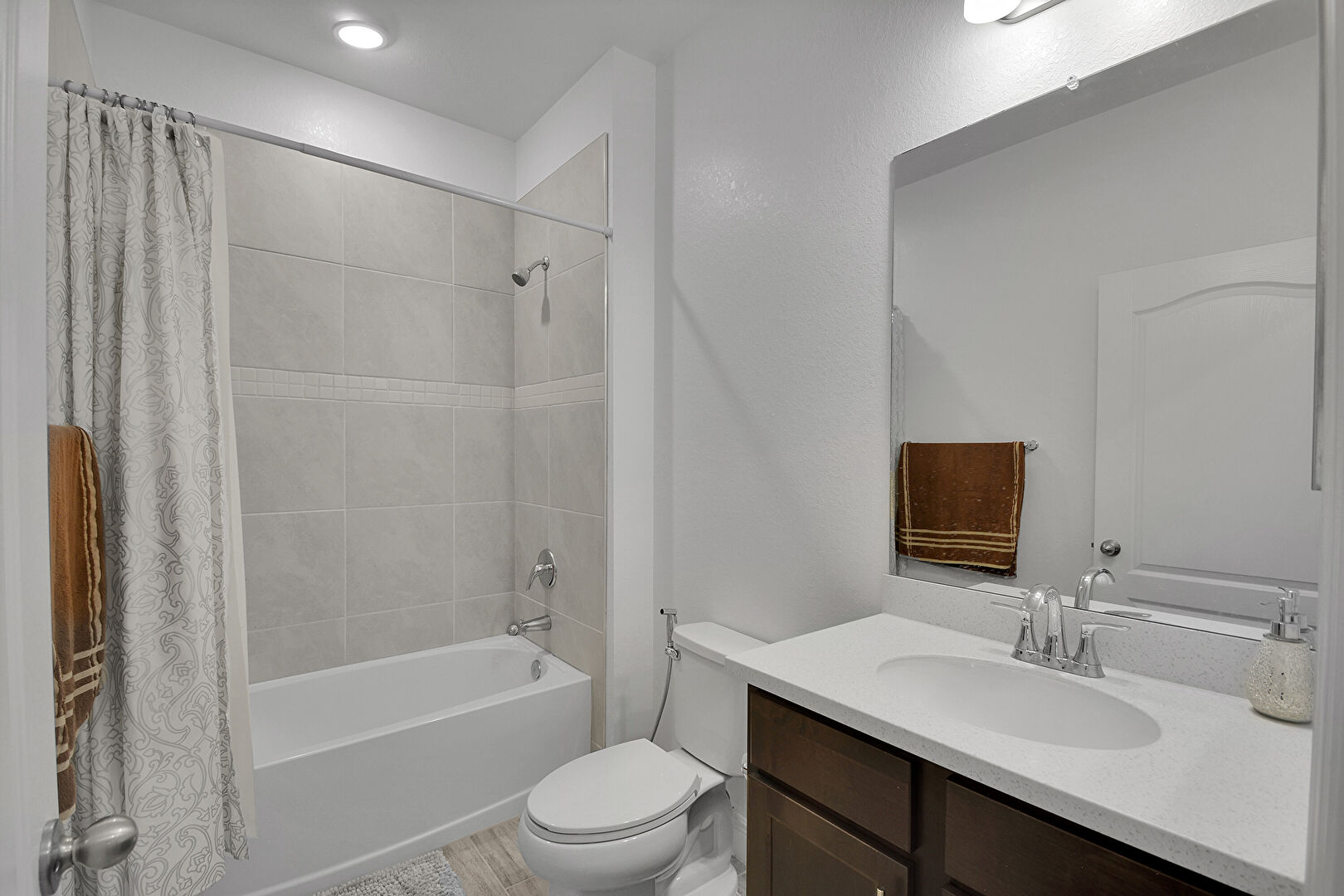 Drywall,  Full Bathroom,  Vanity,  Wood Finish Floor, Combined Bath Shower