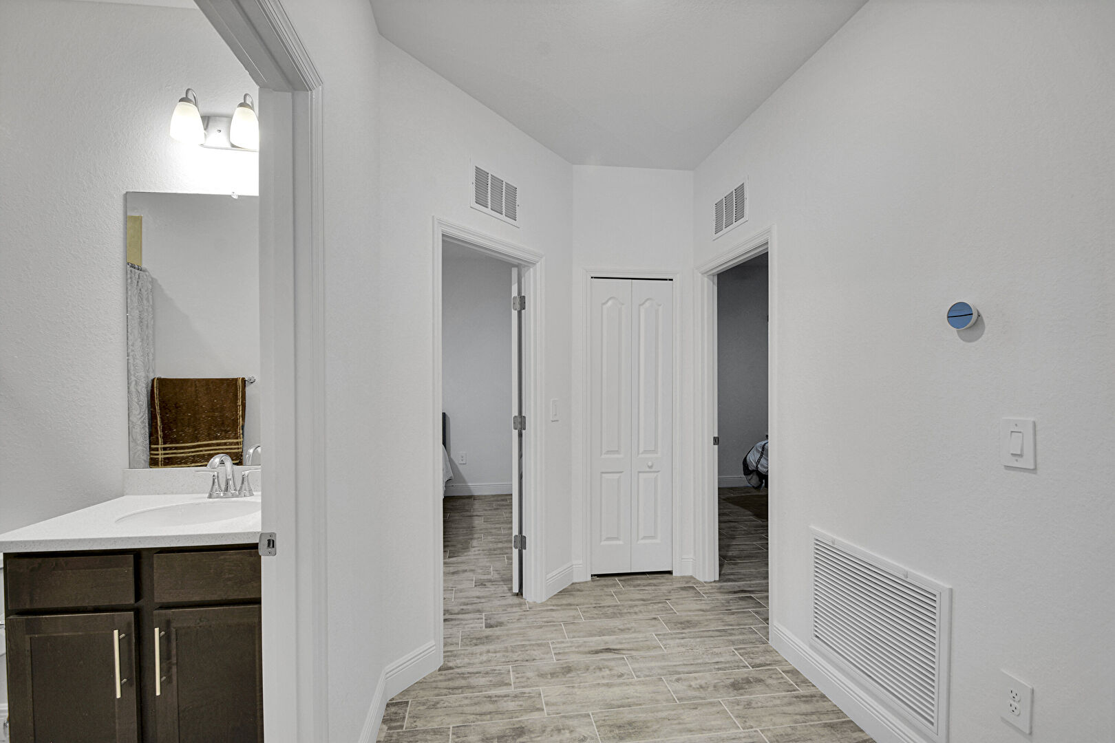 Baseboards Wall,  Drywall,  Full Bathroom,  Vent,  Wood Finish Floor, Vanity