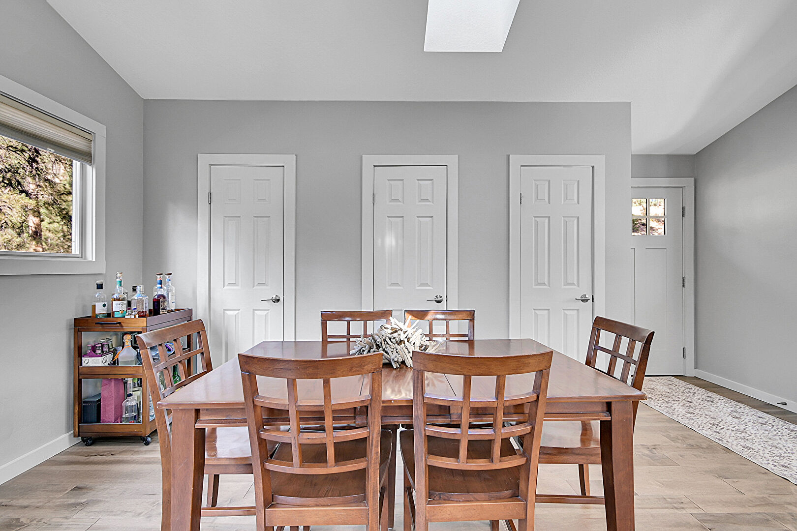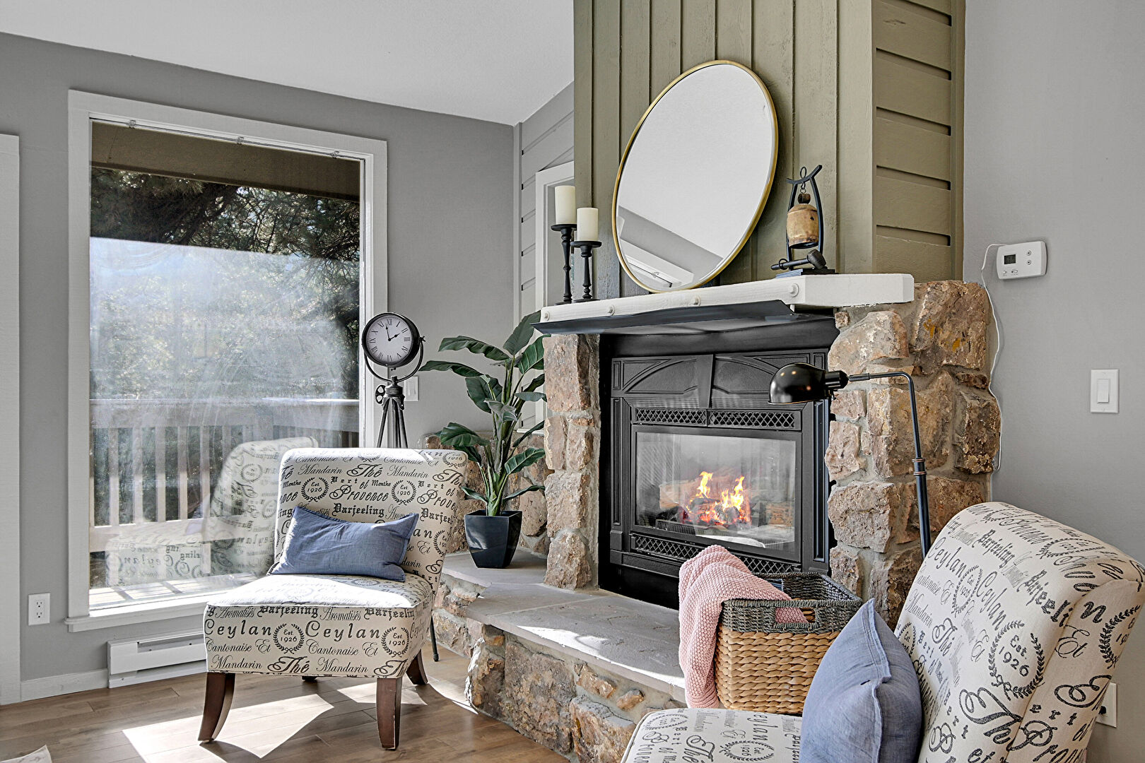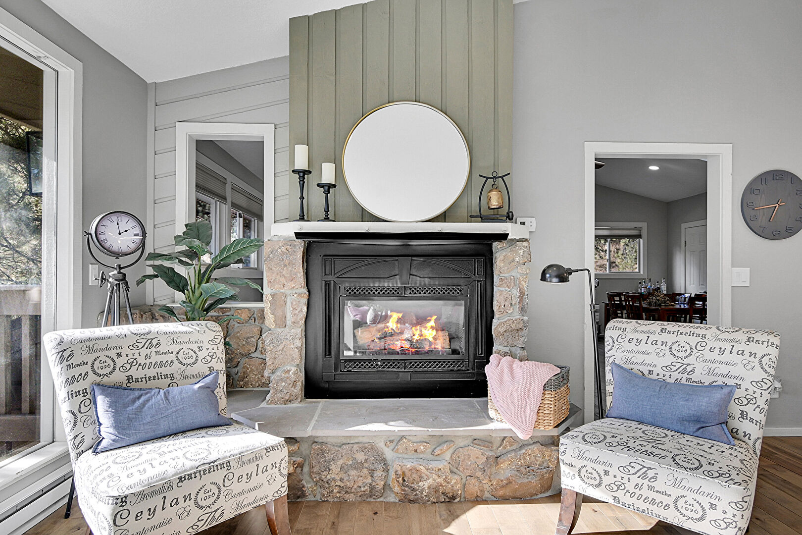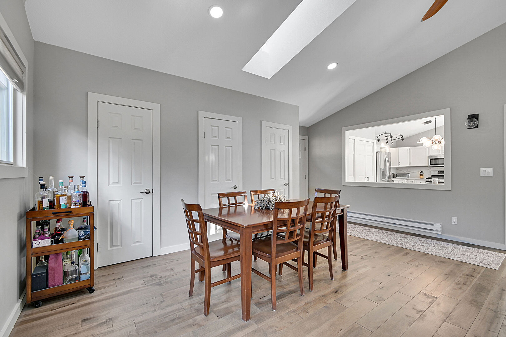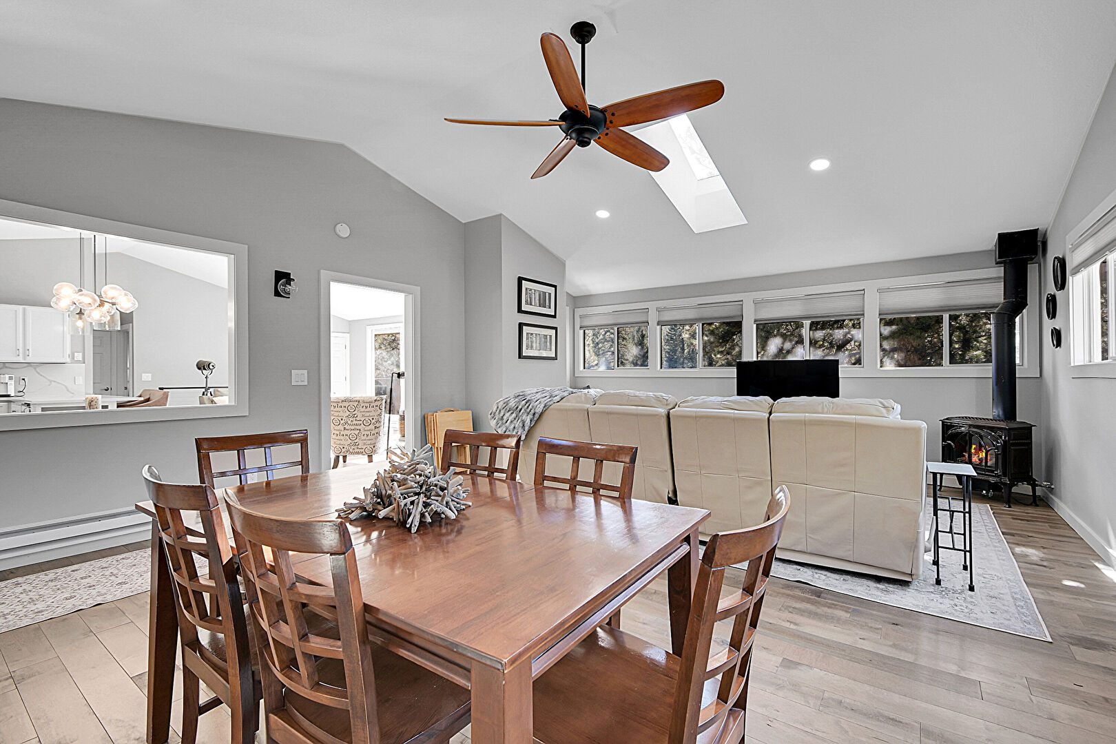 Baseboard Radiator, Baseboards Wall, Cathedral Ceiling, Ceiling Fan, Drywall, Fireplace, French Doors, High Ceiling, L Shaped Kitchen, Natural Light, Notable Chandelier, Recessed Lighting, Skylight, Vaulted Ceiling, Wood Finish Floor, Wood Stove, Cathedral Ceiling, French Doors, High Ceiling, Recessed Lighting, Skylight, Vaulted Ceiling, Wood Stove