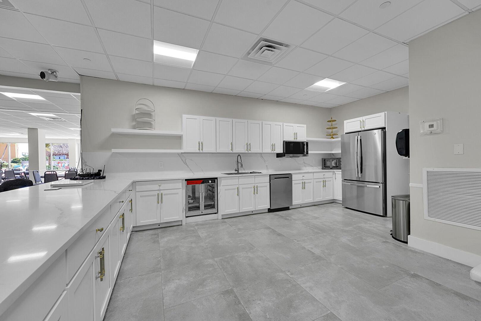 Baseboards Wall, City View, Drop Ceiling, Drywall, Fire Alarm, Grill, Kitchen Peninsula, Lawn, Natural Light, Open Shelves, Parking Lot, Recessed Lighting, Security Camera, Shaker Cabinets, U Shaped Kitchen, Vent, Wine Cooler, Wood Finish Floor, Baseboards Wall, Central Ac, Drywall, Natural Light, Office Area, Stone Countertops, Vent, Water View, Wood Finish Floor