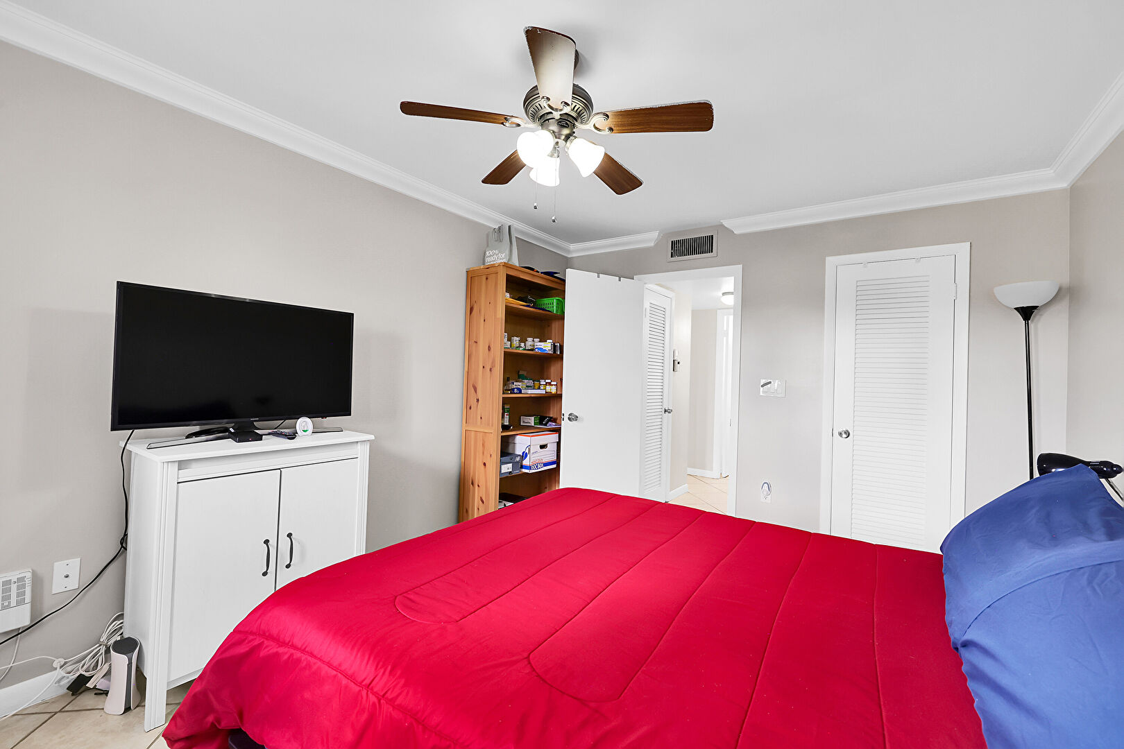 Baseboards Wall, Ceiling Fan, Closet, Crown Molding, Drywall, Natural Light, Space Heater, Tile Floor, Vent, Ceiling Fan, Closet, Tile Floor