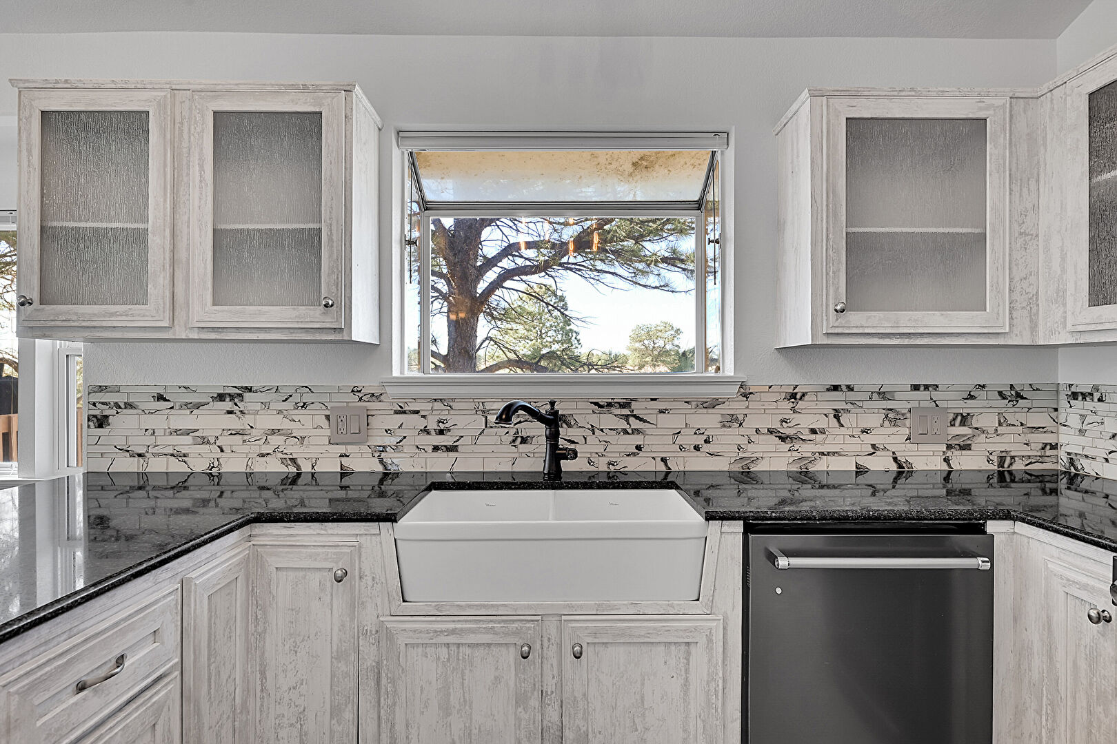 Baseboards Wall, Carpet, Ceiling Fan, Drywall, G Shaped Kitchen, Glass Insert Cabinets, High Ceiling, Kitchen Peninsula, Natural Light, Notable Chandelier, Opens To Living Area, Pendant Lighting, Shaker Cabinets, Stone Countertops, Tile Floor, Vaulted Ceiling, Fireplace, Glass Insert Cabinets, Pendant Lighting, Vaulted Ceiling