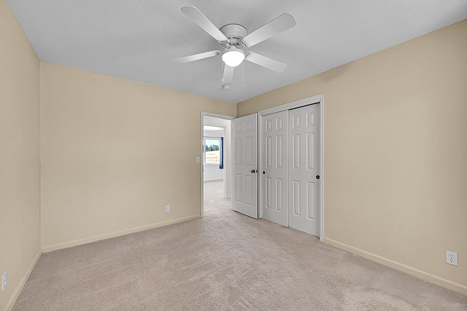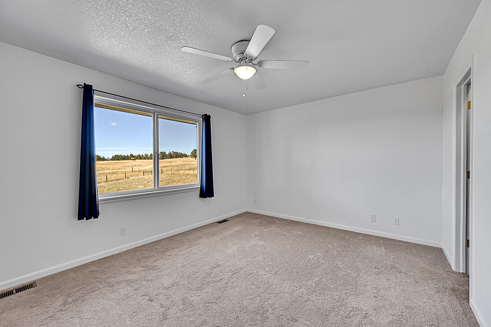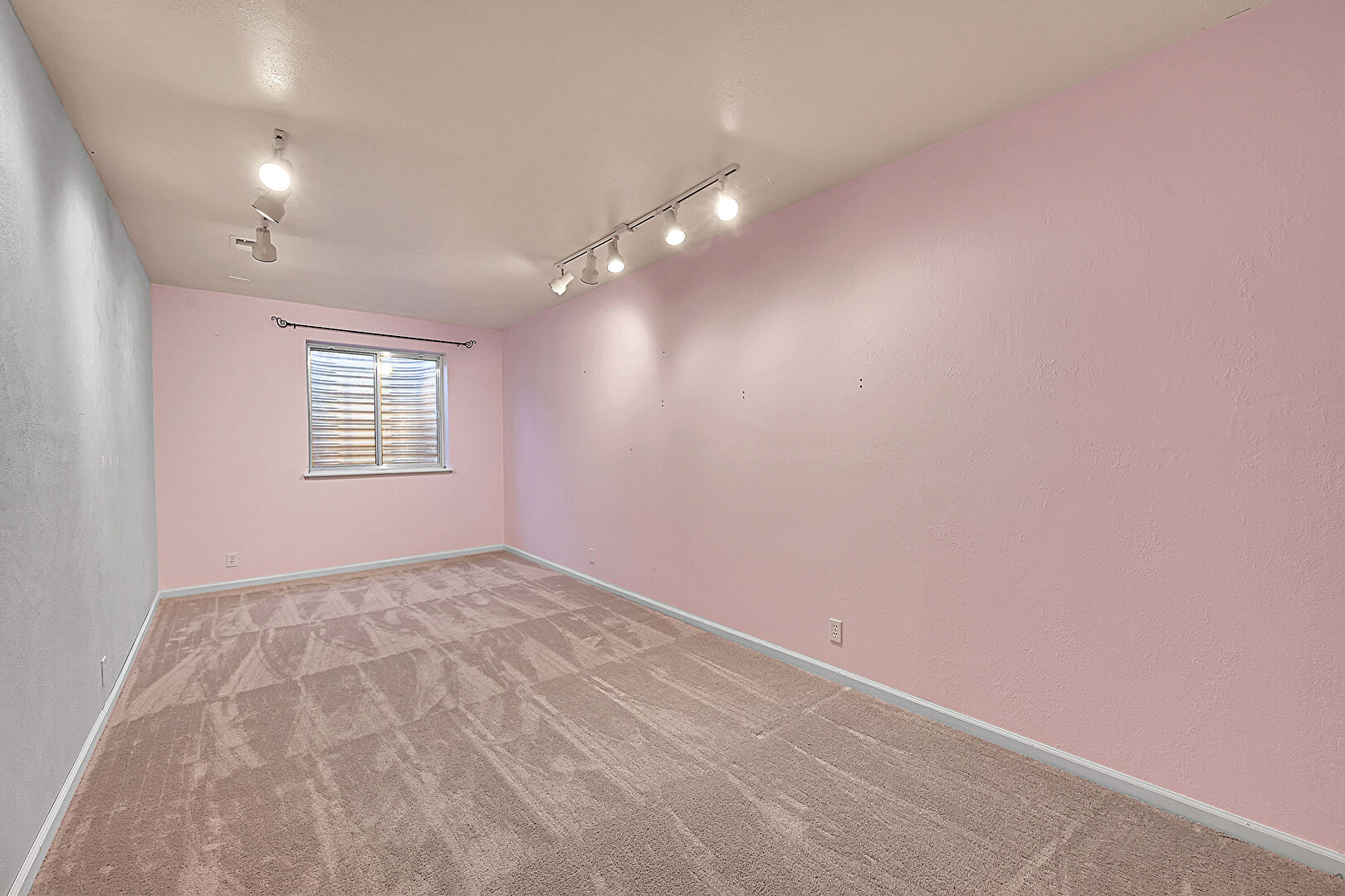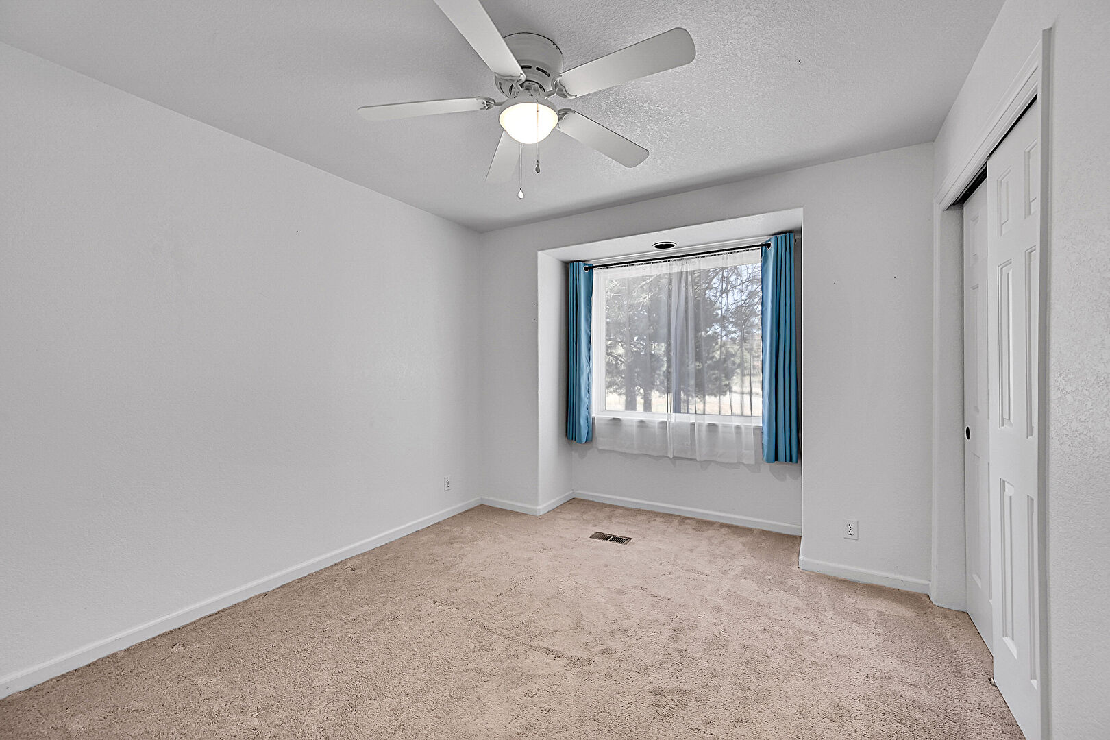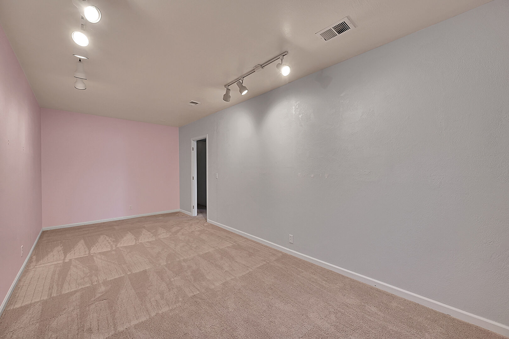 Baseboards Wall, Carpet, Ceiling Fan, Closet, Drywall, Natural Light, Textured Ceiling, Textured Wall, Track Lighting, Vent, Baseboards Wall, Carpet, Closet, Vent