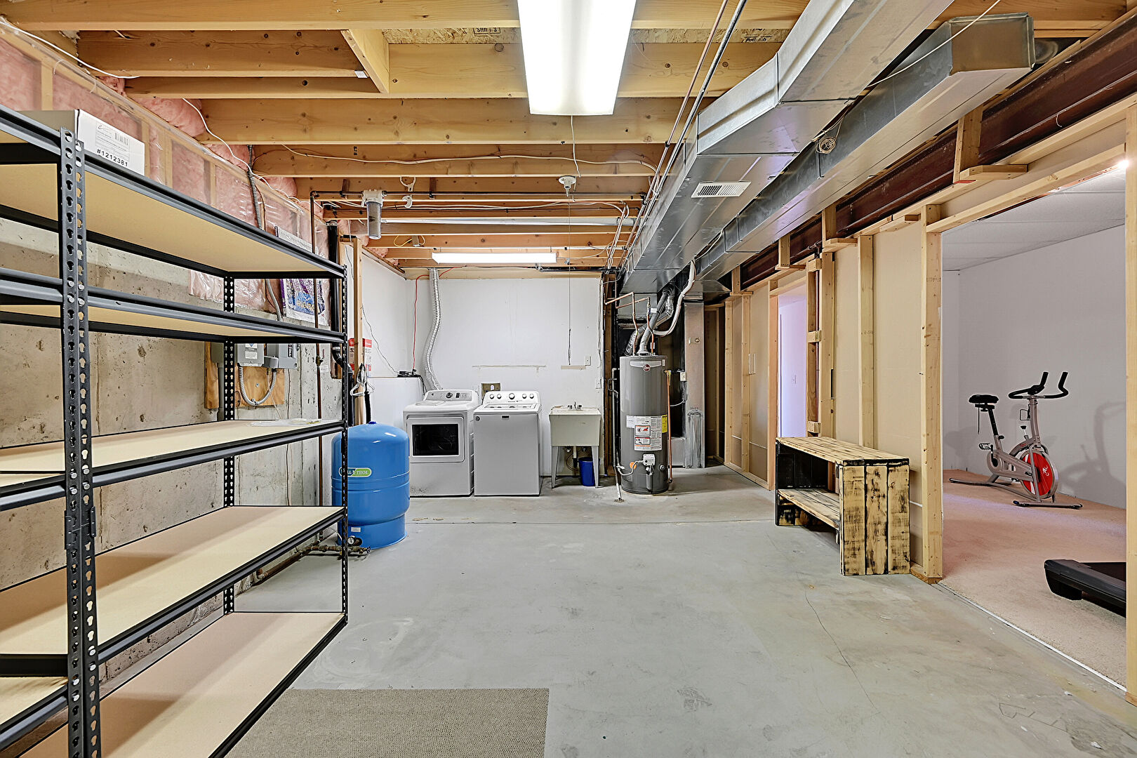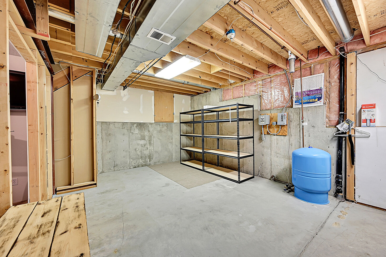 Basement, Drywall, Furnace, Laundry, Vent, Washer Hookup, Water Pressure Tank, Concrete Foundation, Water Heater