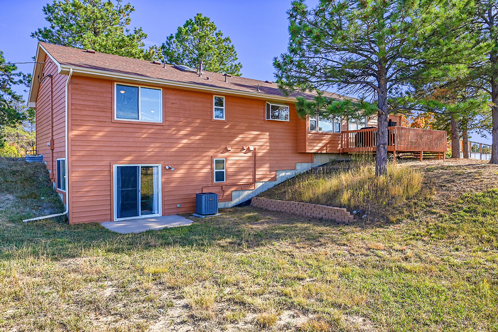 Basement Walk Out, Central Ac, Concrete Foundation, Deck, Downspout, Fence, Gate, Horizontal Siding, Lawn, Patio, Stairs, Deck, Downspout, Gutters