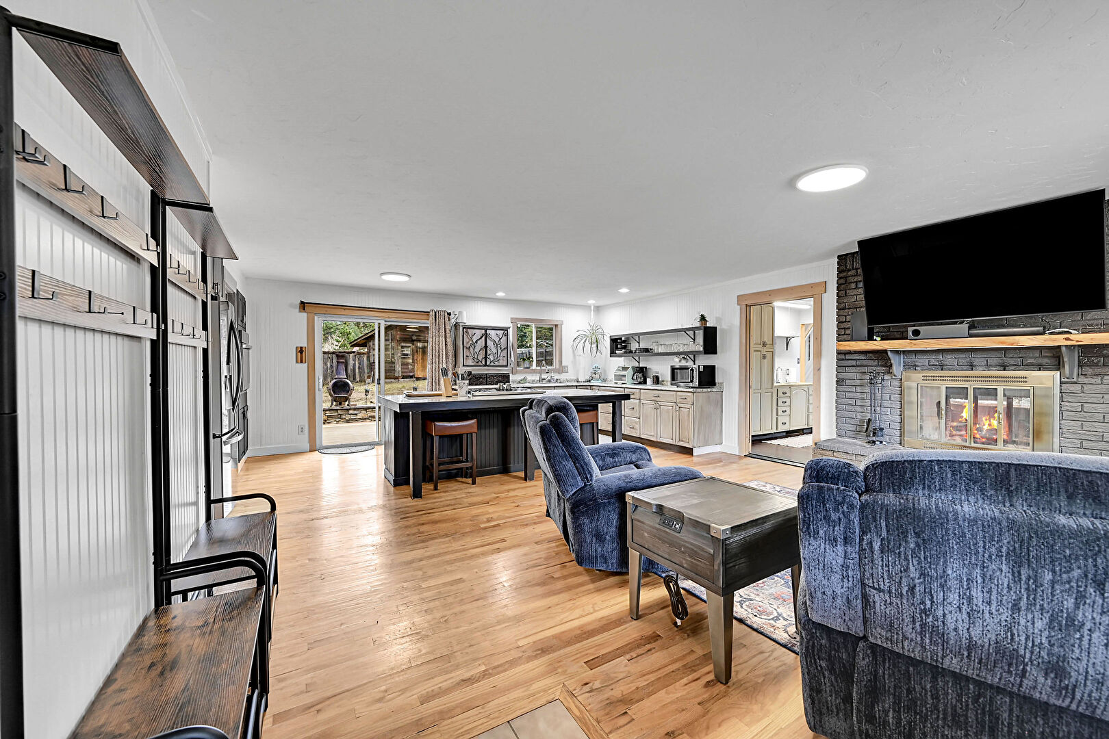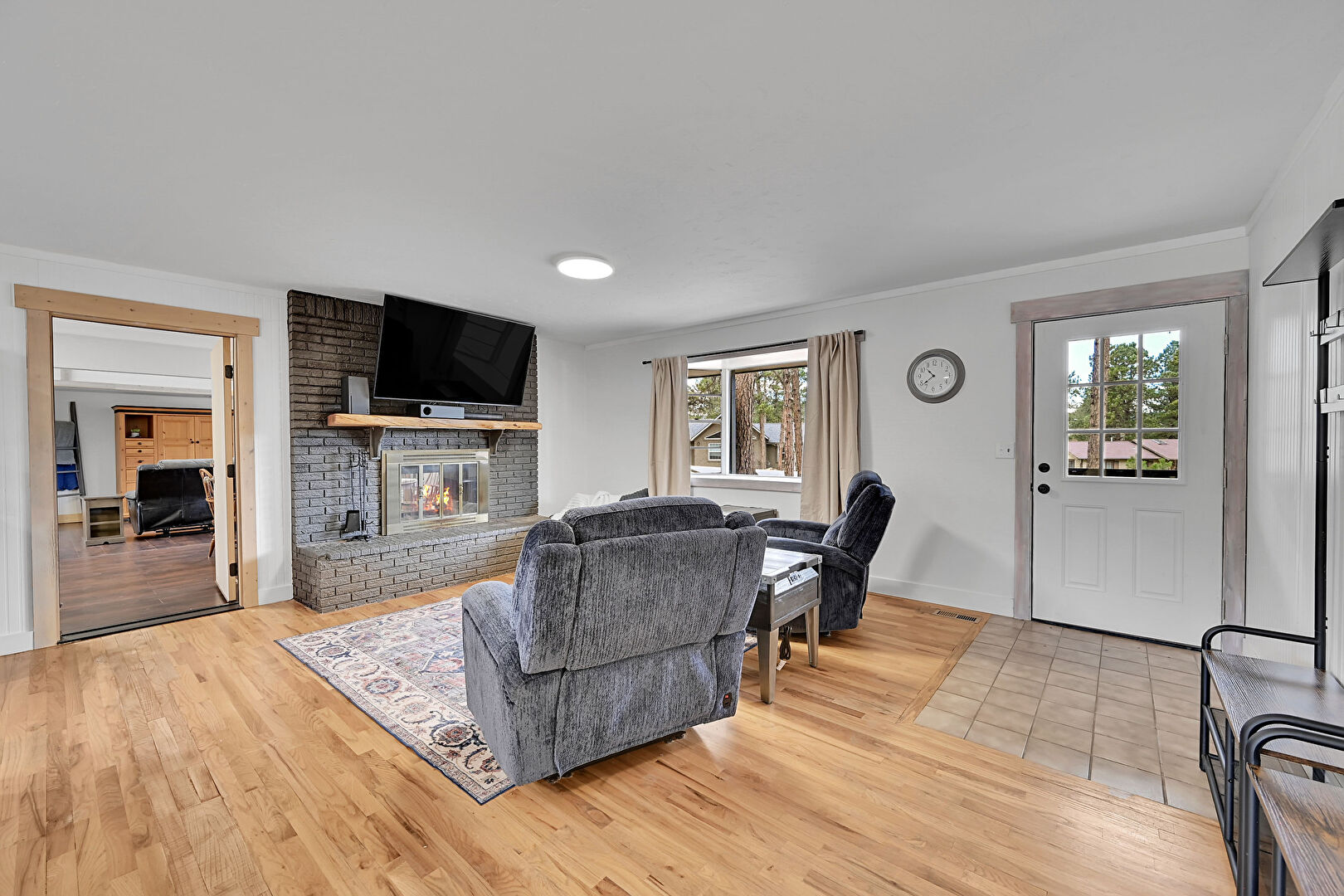 Baseboards Wall, Drywall, Fireplace, Natural Light, Recessed Lighting, Wood Finish Floor