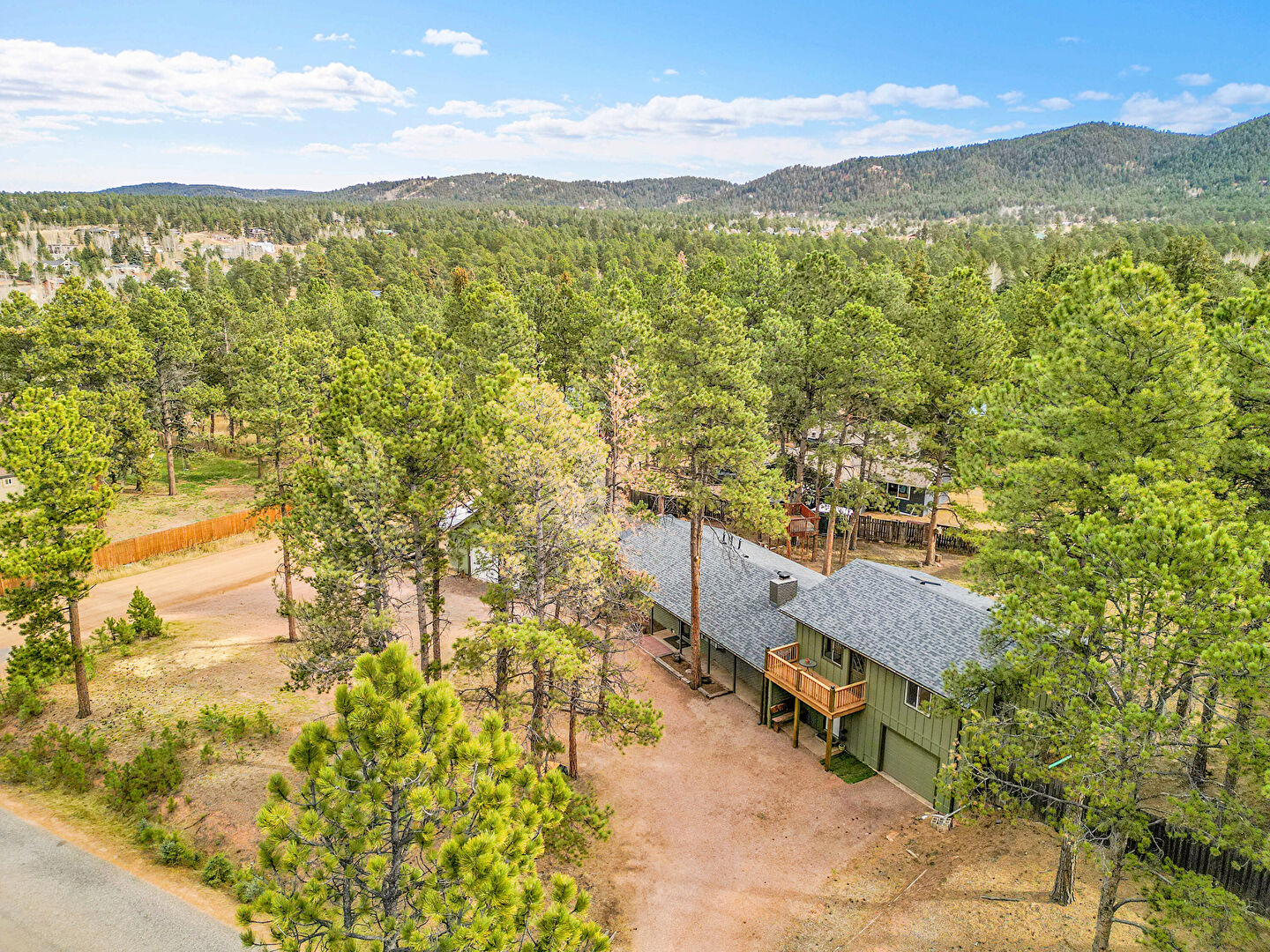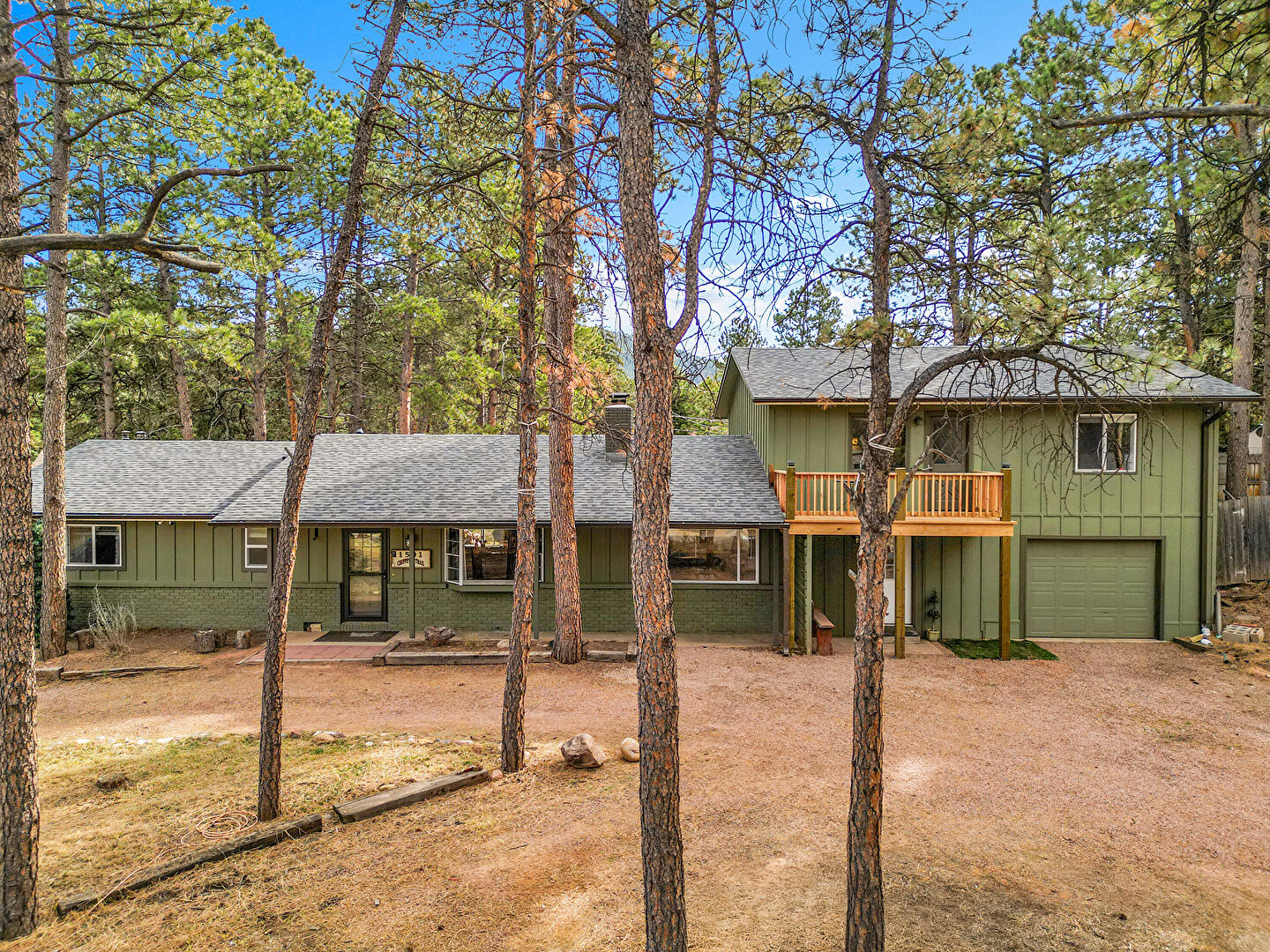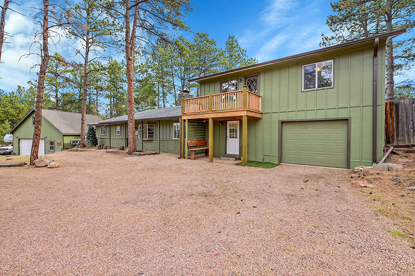 Balcony, Basement Walk Out, Board Batten Siding, Brick Siding, Built In Garage, Downspout, Driveway, Forest View, Garage, Gutters, Mountain View, Outdoor Structure, Porch, Shingle Roof, Vertical Siding, Woods View, Downspout, Fence, Forest View, Gutters, Mountain View, Vertical Siding