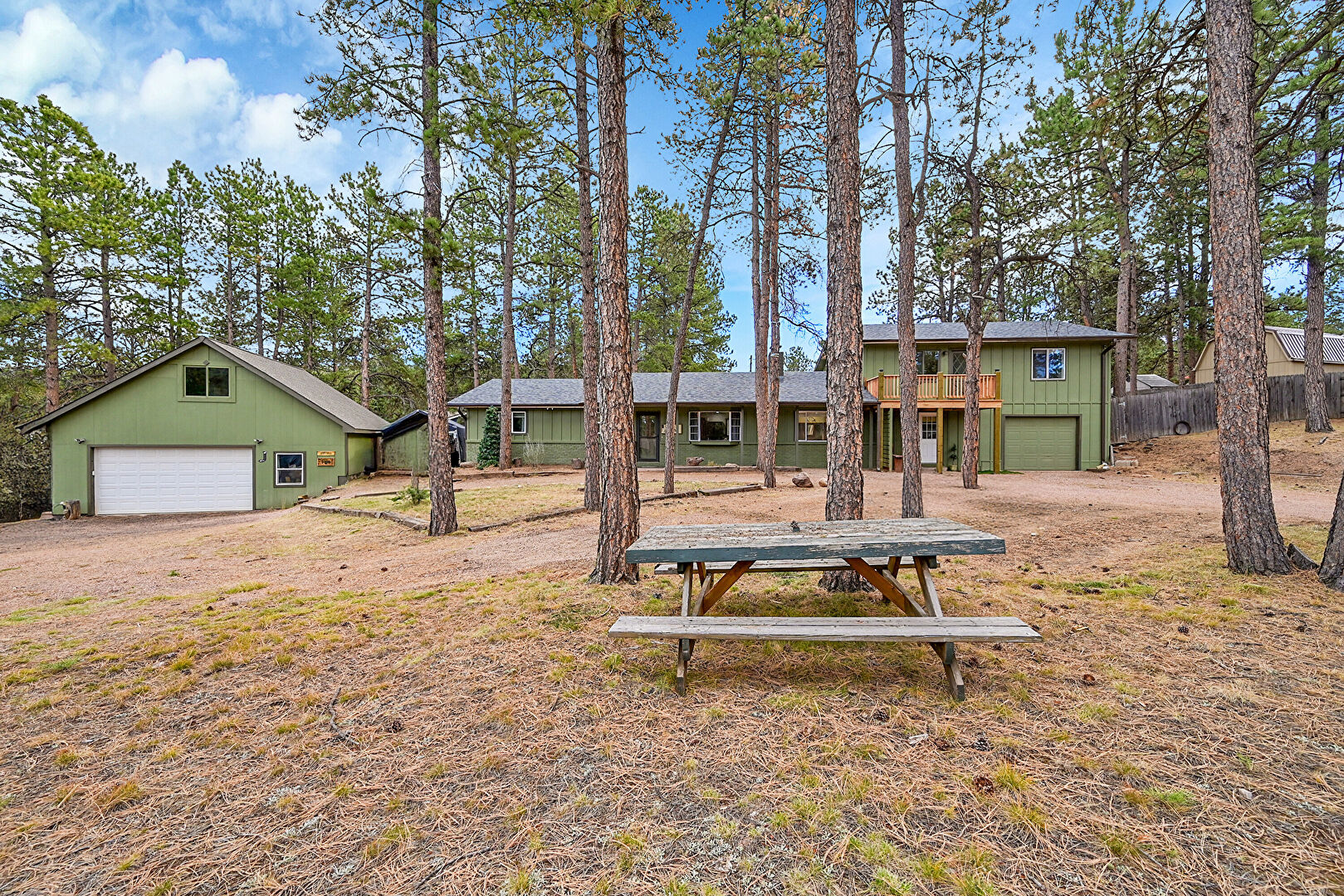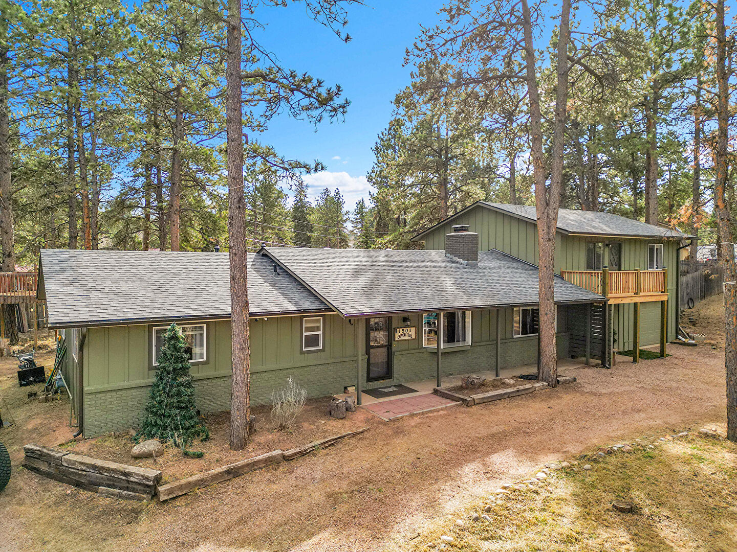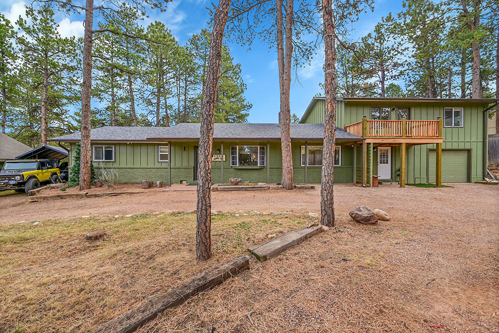 Balcony, Basement Walk Out, Board Batten Siding, Brick Siding, Built In Garage, Downspout, Driveway, Forest View, Garage, Gutters, Mountain View, Outdoor Structure, Porch, Shingle Roof, Vertical Siding, Woods View, Downspout, Fence, Forest View, Gutters, Mountain View, Vertical Siding