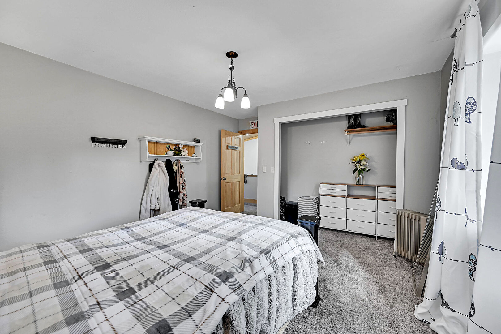 Baseboards Wall, Carpet, Closet, Drywall, Natural Light, Notable Chandelier, Office Area, Radiator, Carpet, Drywall, Natural Light