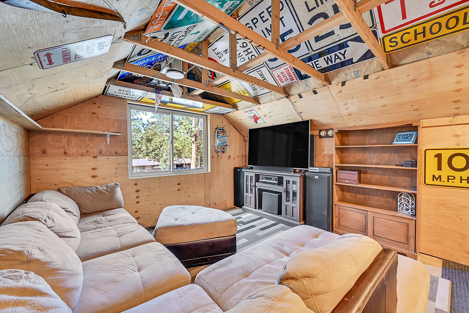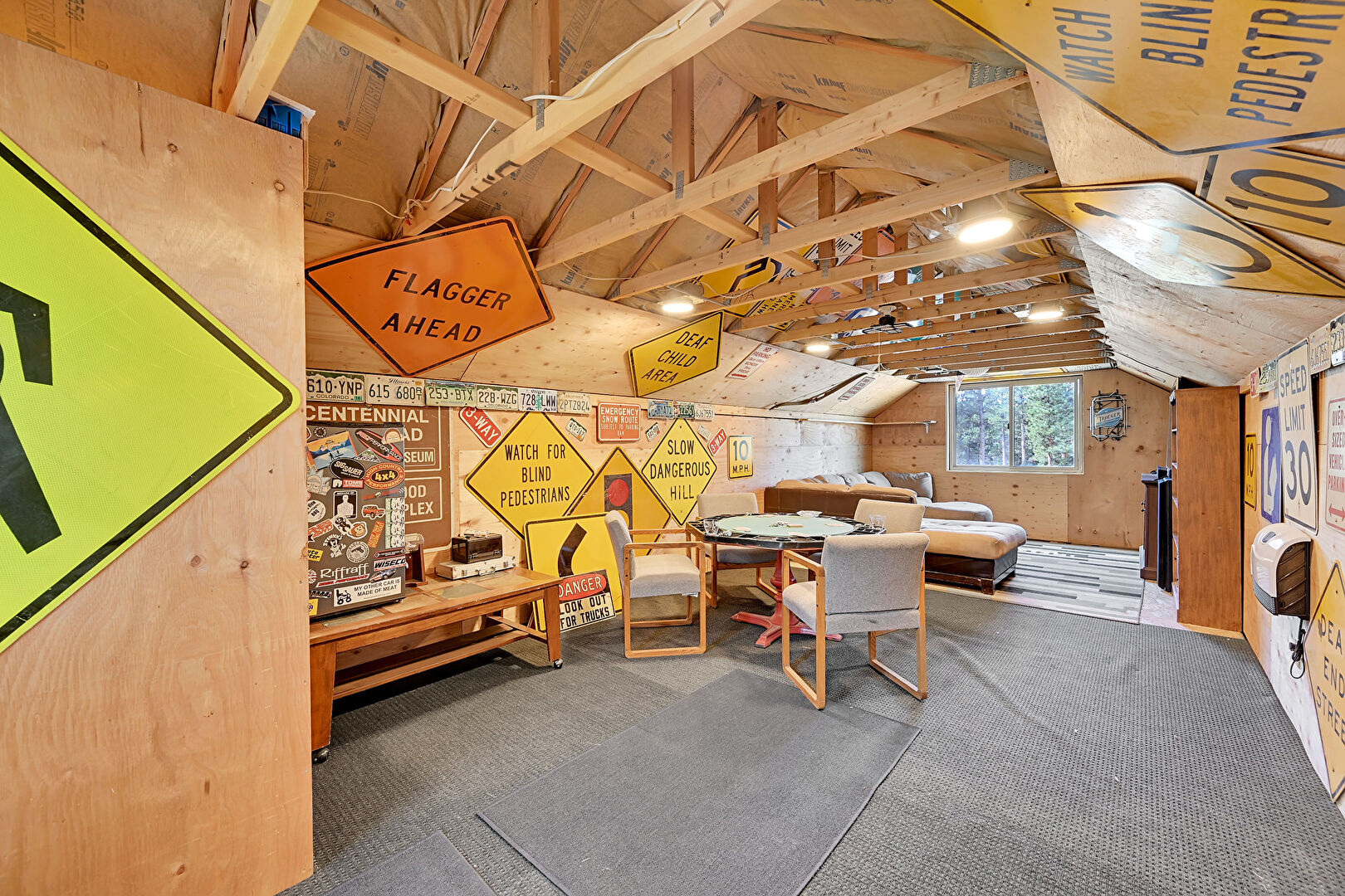 Bonus Room, Carpet, Cathedral Ceiling, Natural Light, Space Heater, Vaulted Ceiling, Wood Wall, Carpet, Natural Light, Vaulted Ceiling