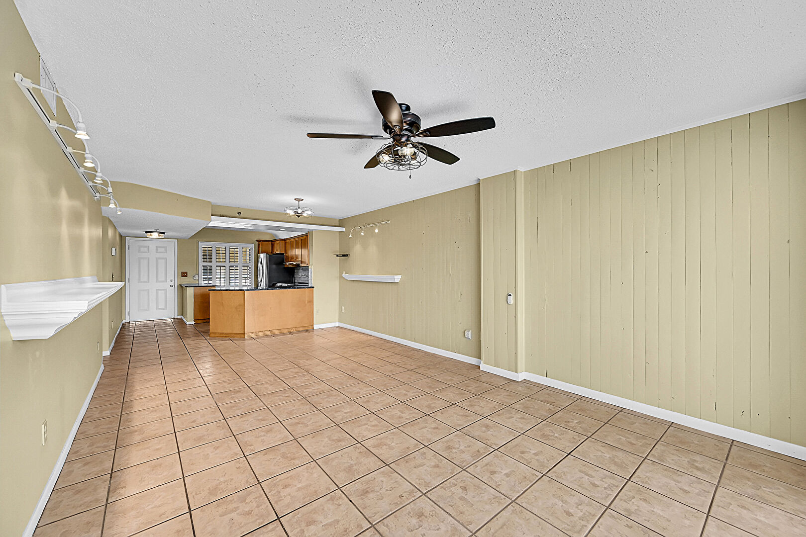 Baseboards Wall,  Ceiling Fan,  Drywall,  Smoke  Carbon Monoxide Detector,  Textured Ceiling,  Vent,  Wood Wall, Tile Floor