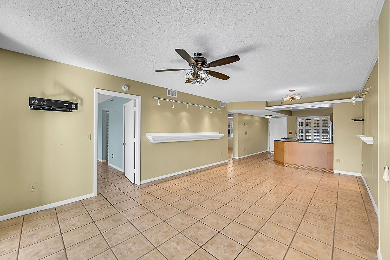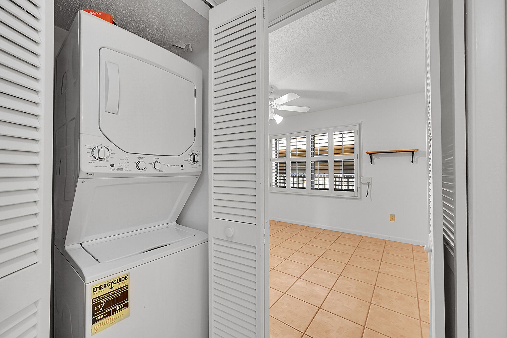 Baseboards Wall,  Ceiling Fan,  Drywall,  Laundry,  Natural Light,  Textured Ceiling, Tile Floor