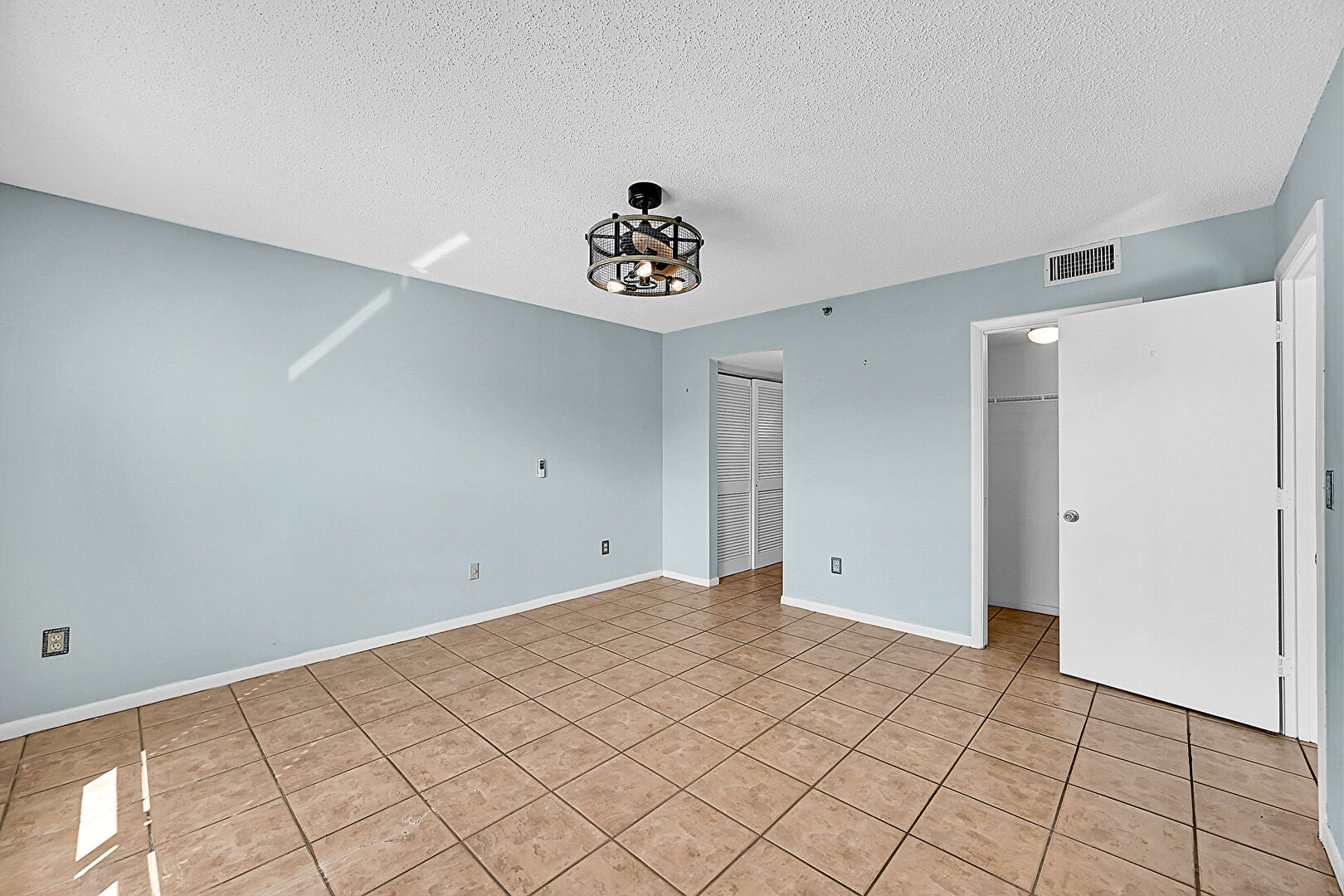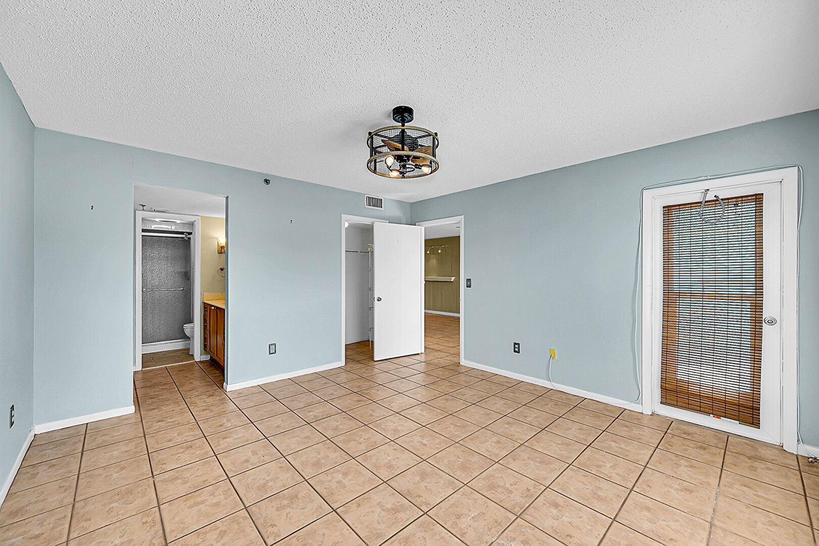 Baseboards Wall,  Ceiling Fan,  Closet,  Drywall,  Ensuite Bathroom,  Natural Light,  Textured Ceiling,  Tile Floor,  Vent,  Walk In Closet, Baseboards Wall, Natural Light, Tile Floor