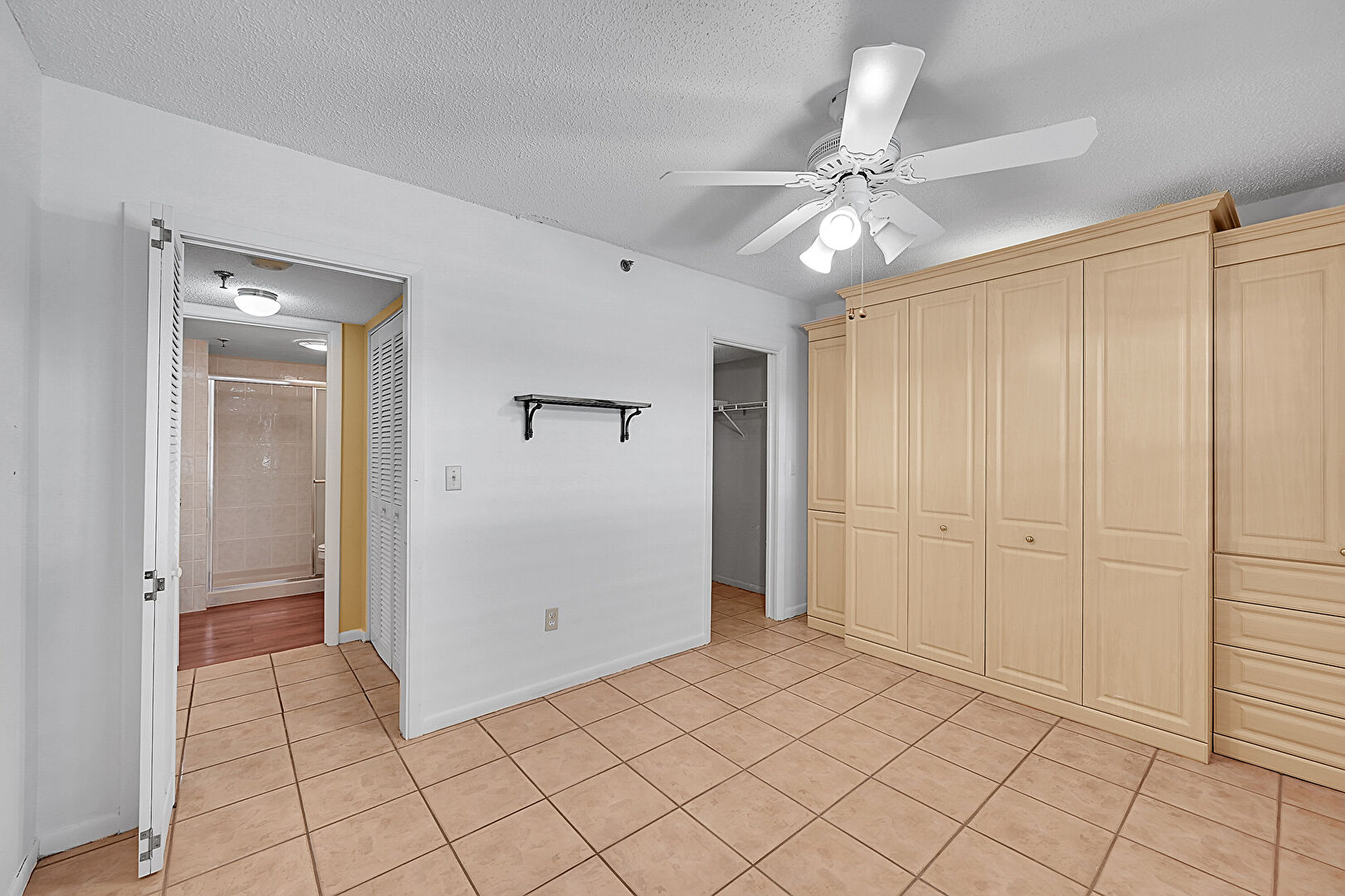 Baseboards Wall,  Ceiling Fan,  Closet,  Drywall,  Ensuite Bathroom,  Natural Light,  Textured Ceiling,  Tile Floor,  Walk In Closet, Baseboards Wall, Textured Ceiling
