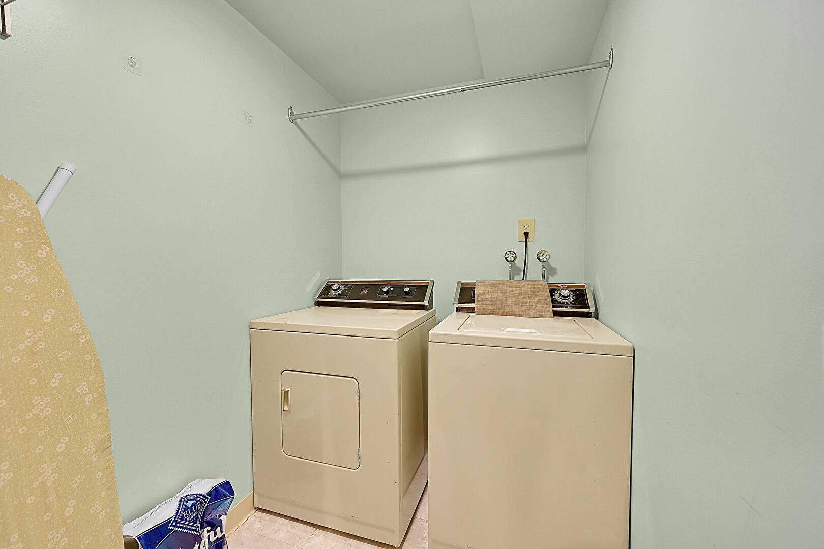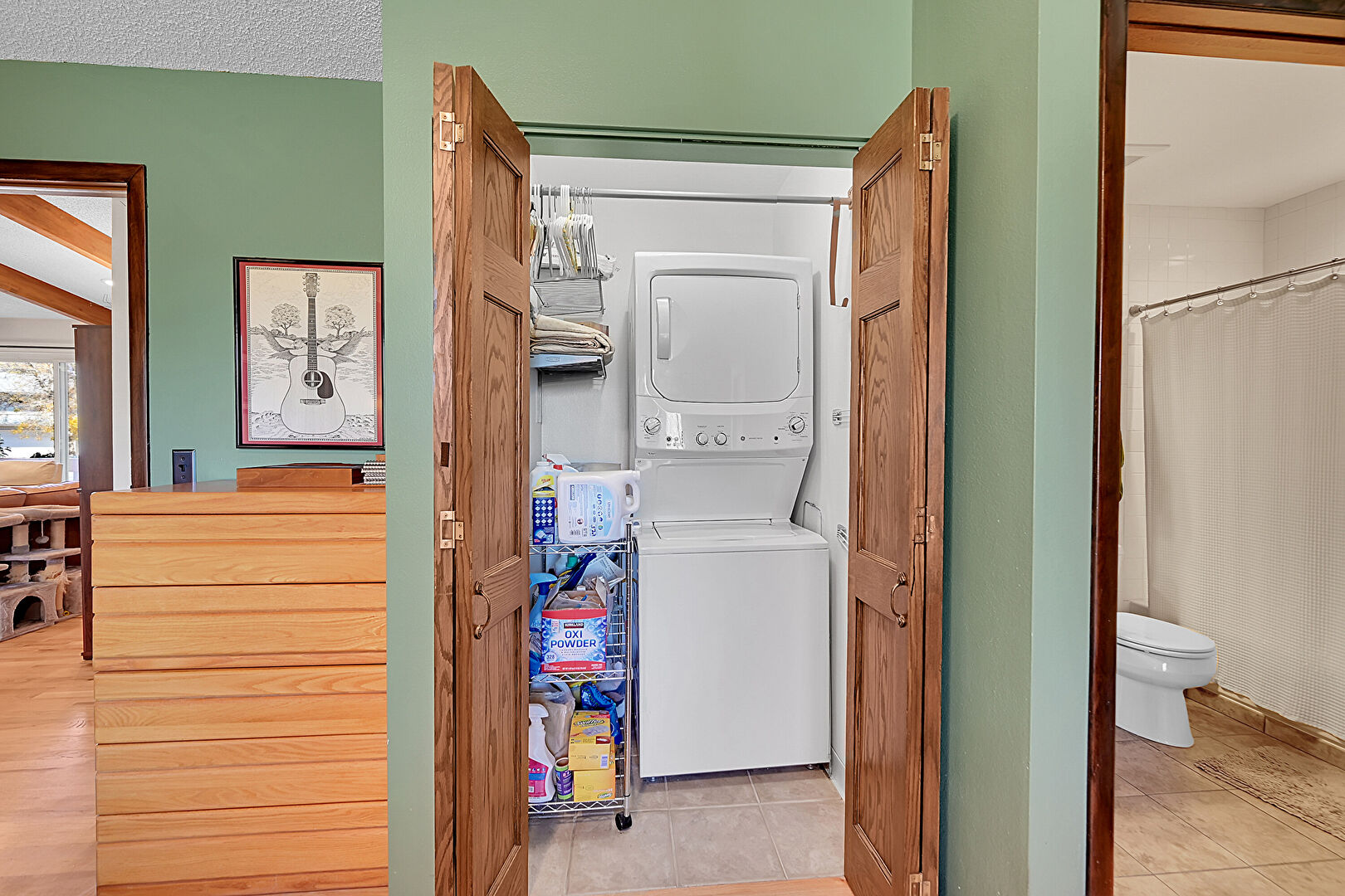 Baseboards Wall, Drywall, Laundry, Textured Ceiling, Tile Floor, Natural Light, Washer Hookup