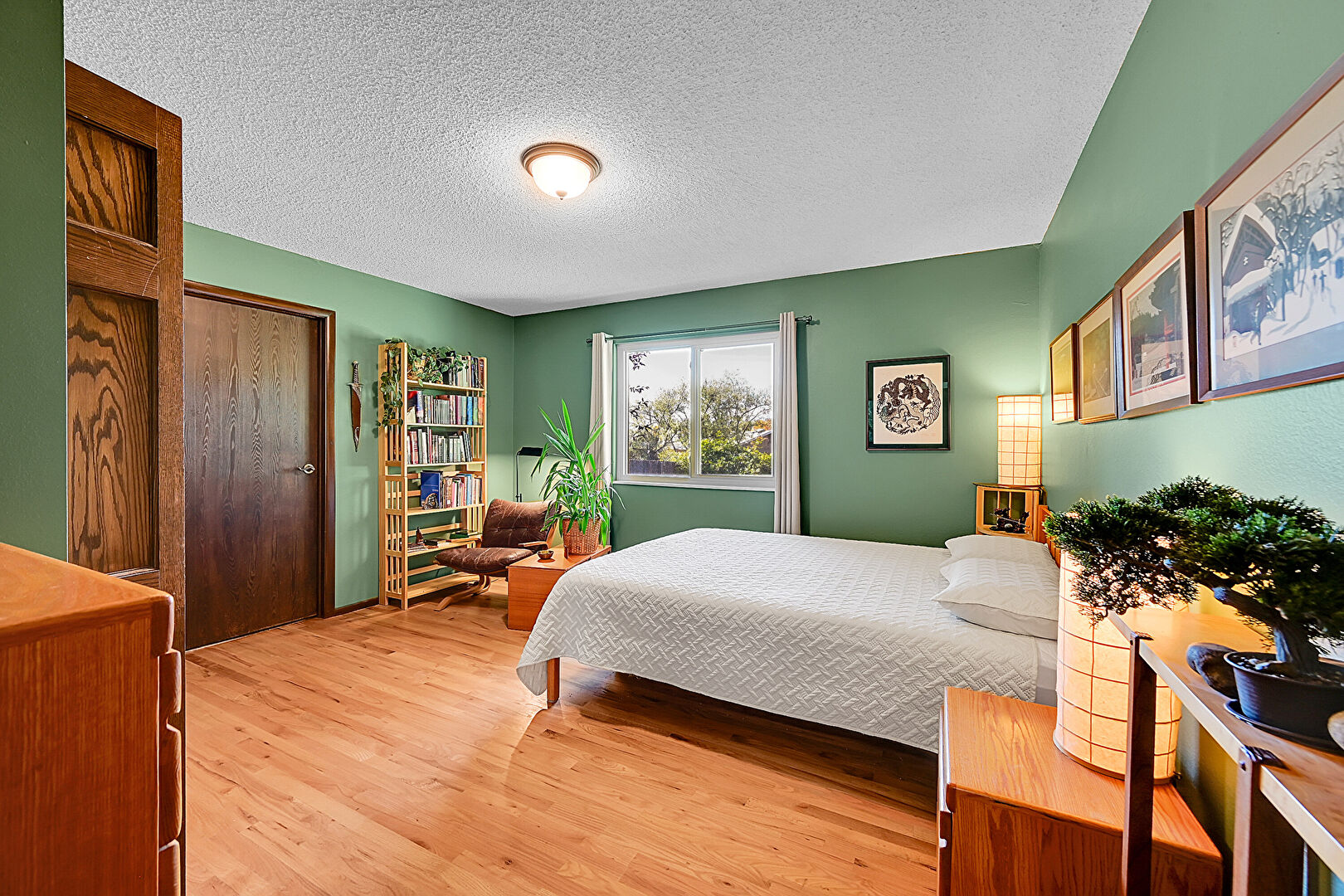 Drywall, Natural Light, Textured Ceiling, Wood Finish Floor