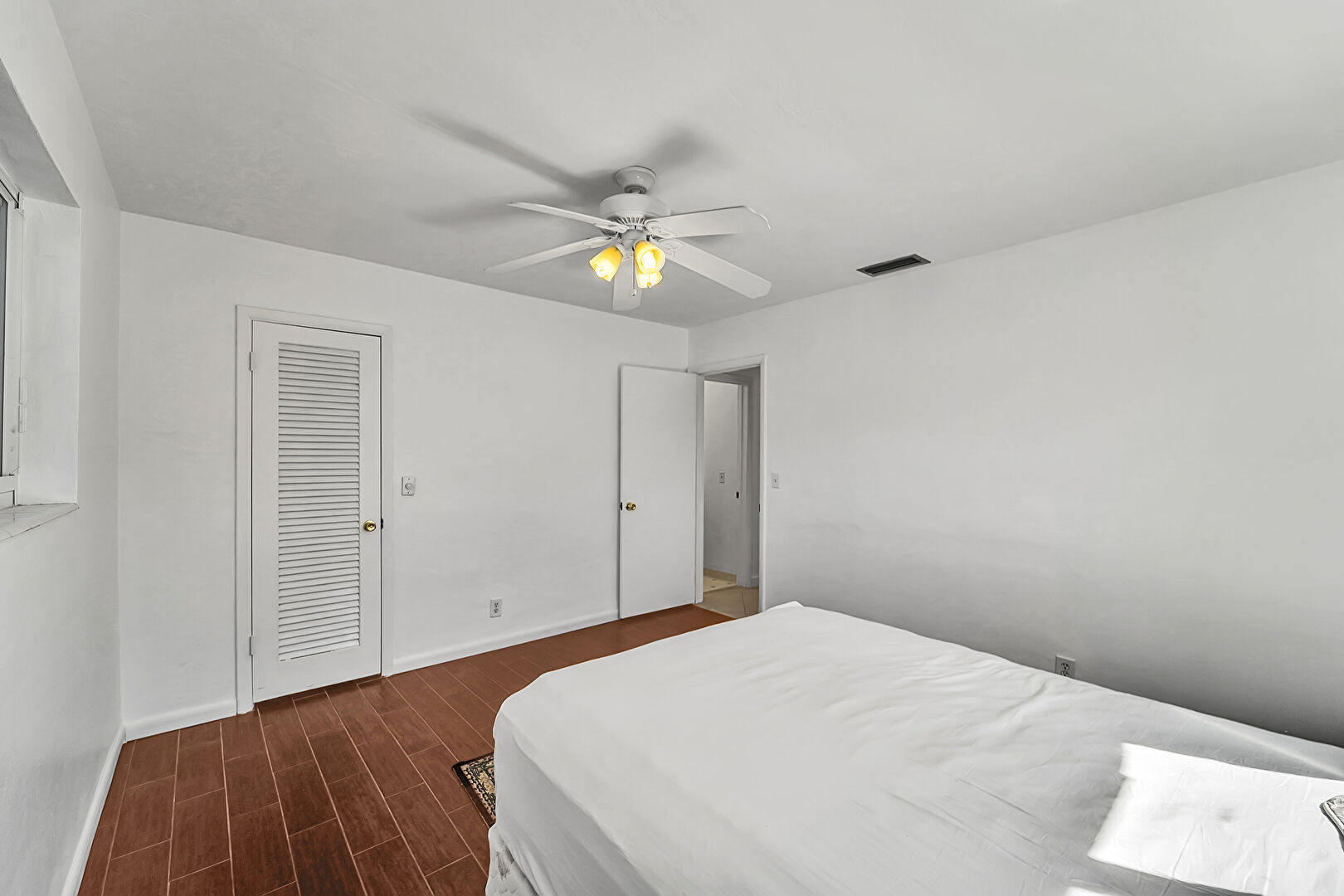 Baseboards Wall, Ceiling Fan, Drywall, Ensuite Bathroom, Natural Light, Vent, Wood Finish Floor, Ceiling Fan, Closet