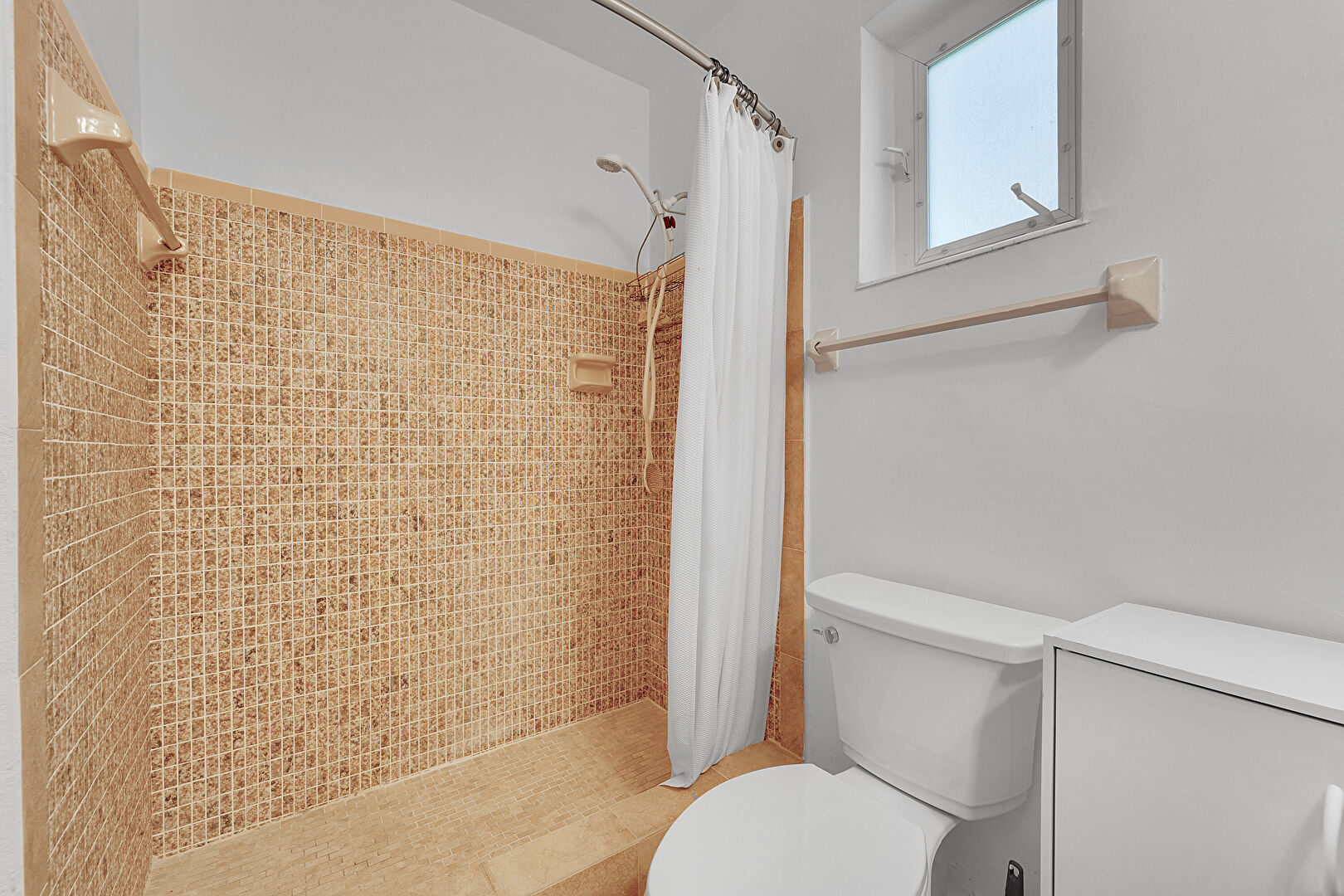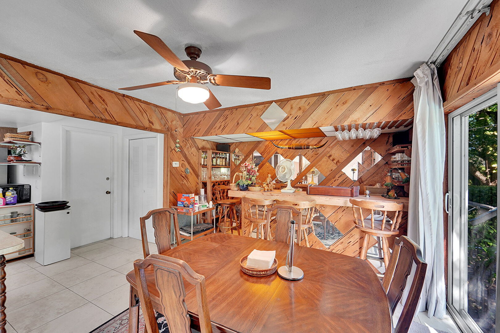 Ceiling Fan, Natural Light, Wood Wall, Tile Floor