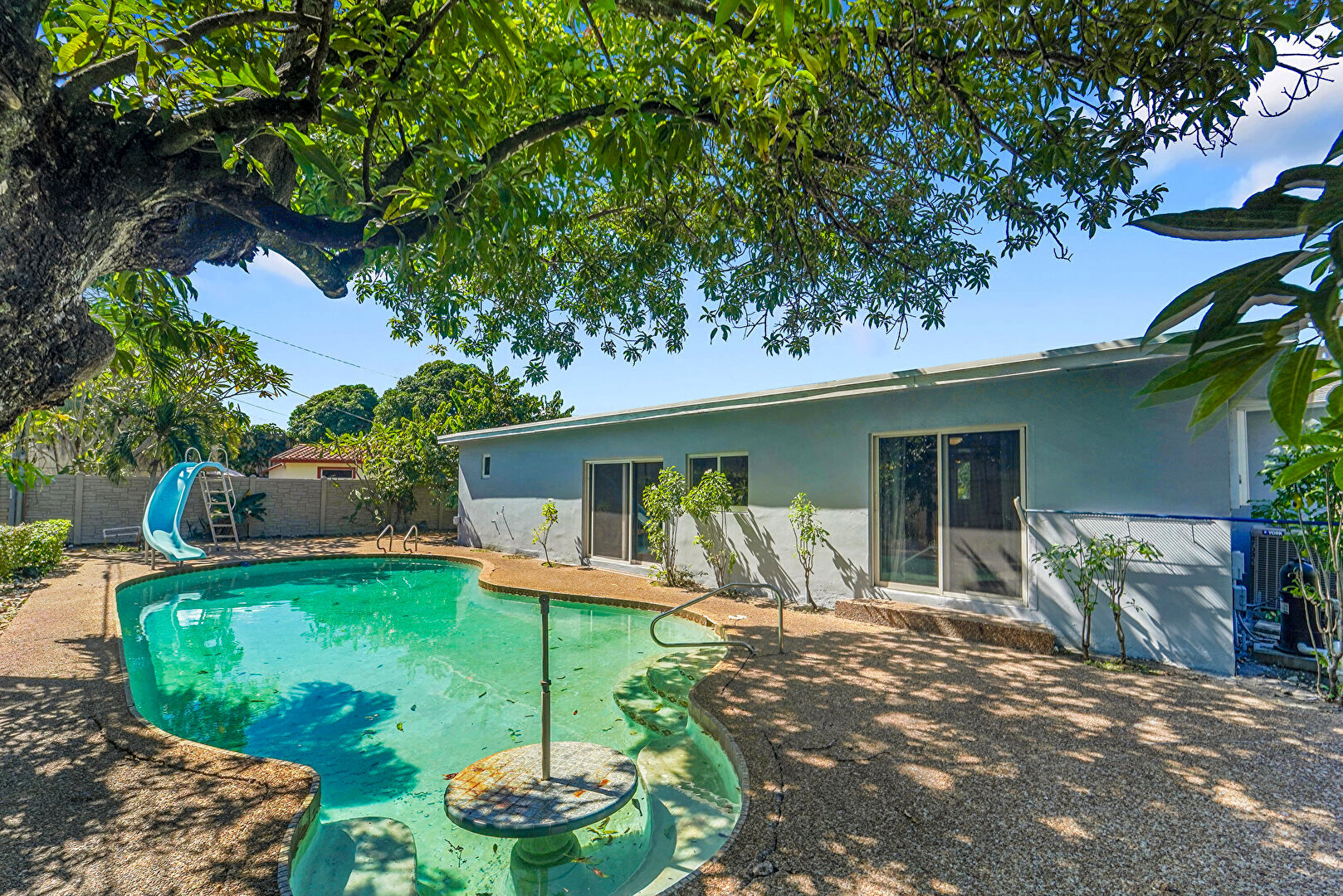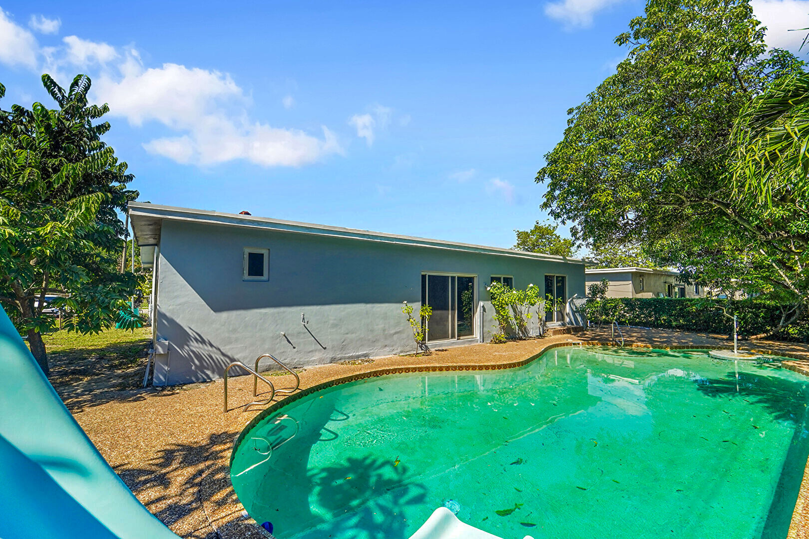 Fence, Patio, Pool, Stucco Siding, Water Slide, Handrail