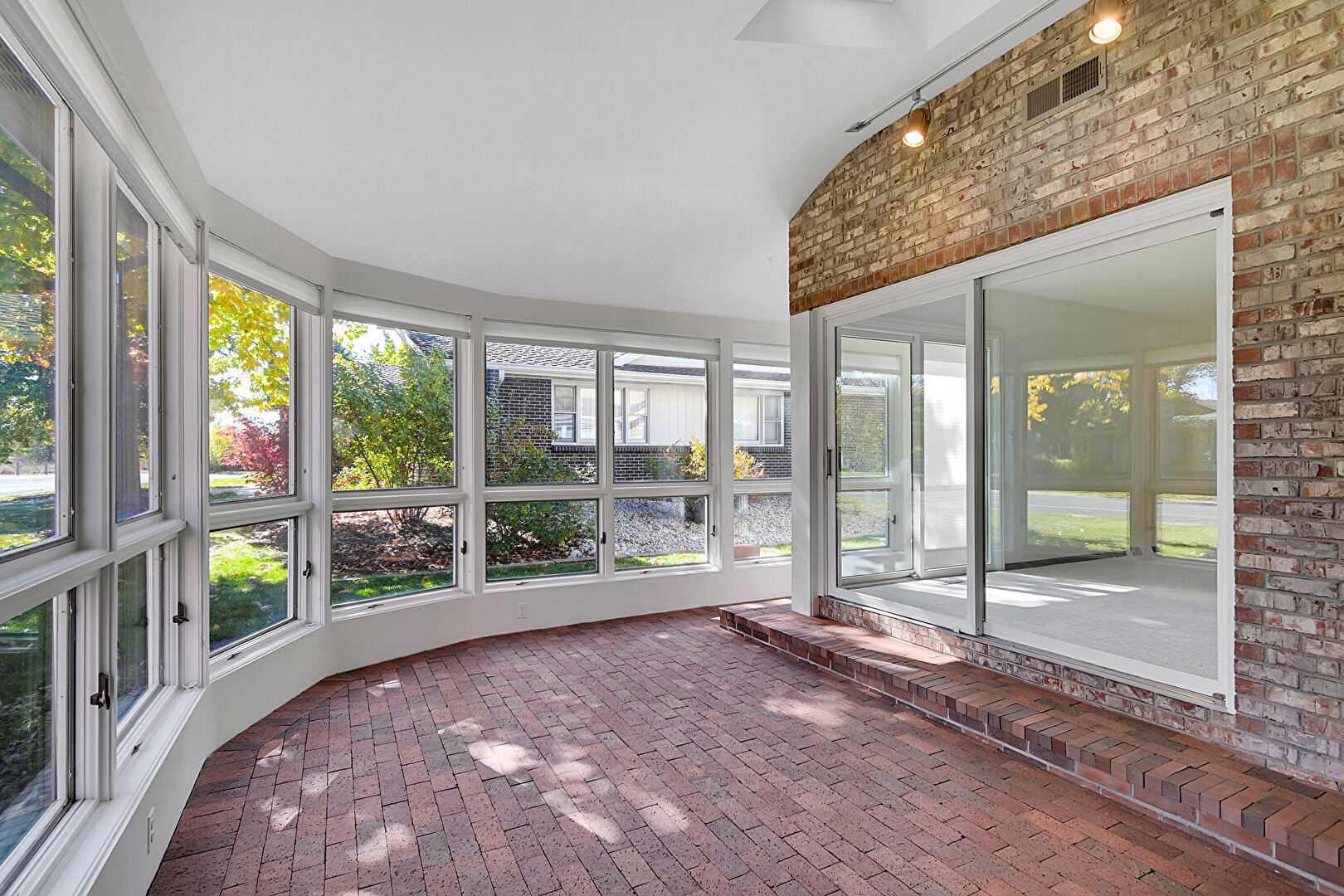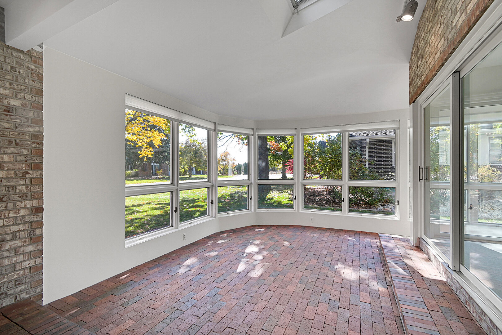 Brick Finish Floor,  Brick Wall,  Drywall,  Natural Light,  Sunroom,  Vaulted Ceiling, Brick Finish Floor, Drywall, Natural Light, Vent