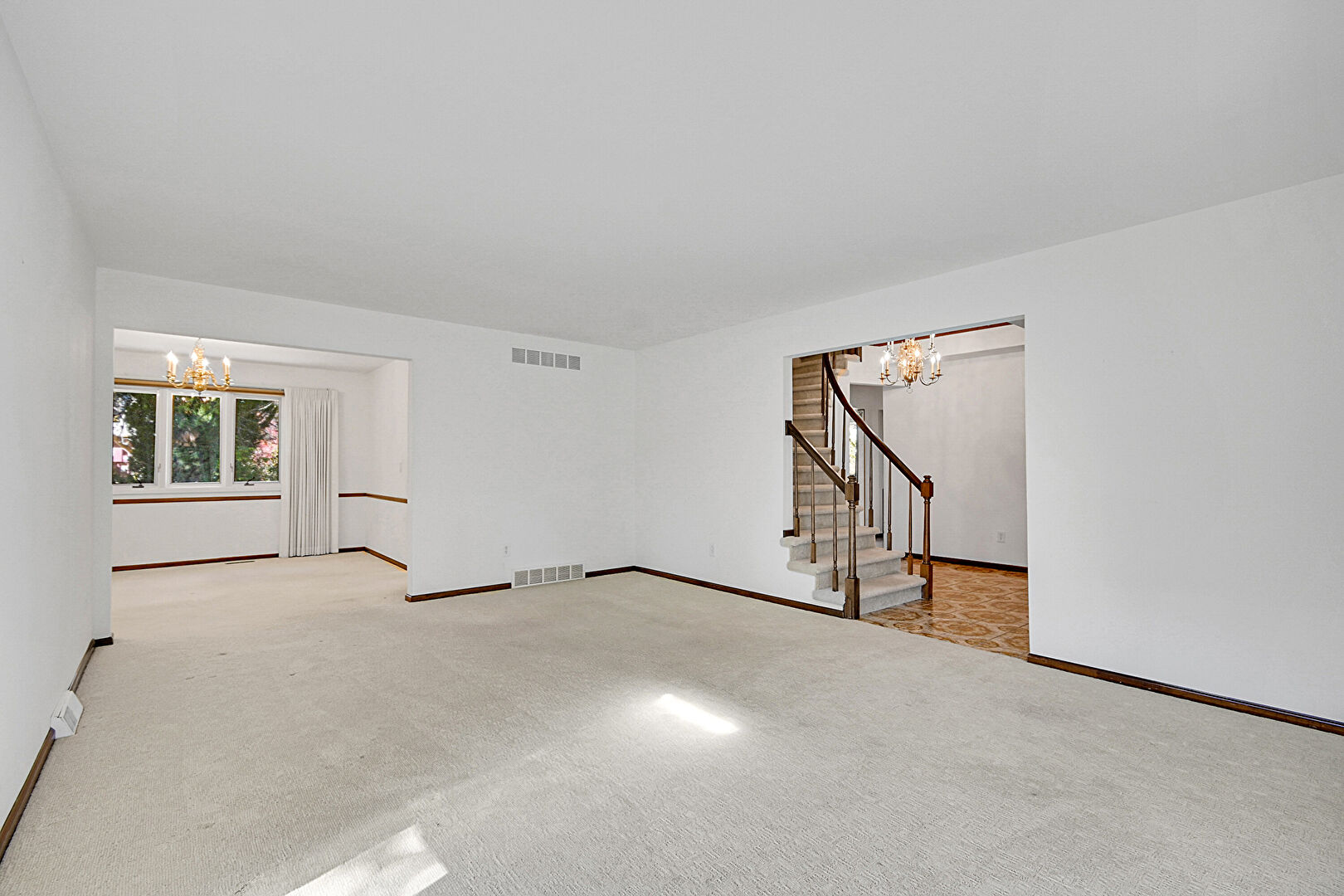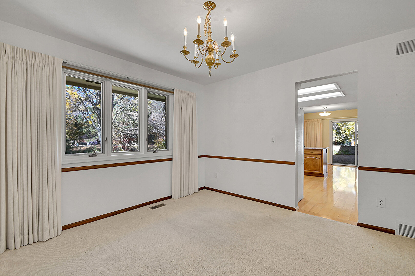 Carpet,  Drywall,  Natural Light,  Notable Chandelier,  Vent, Baseboards Wall