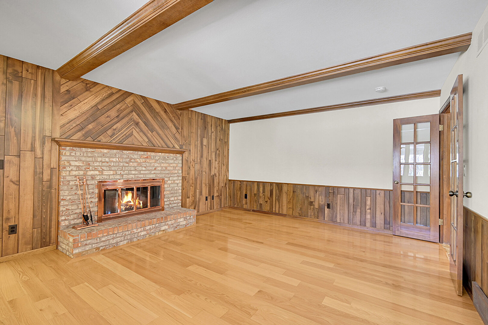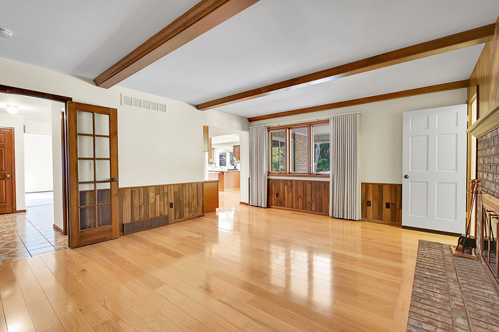 Baseboards Wall,  Beamed Ceiling,  Carpet,  Crown Molding,  Drywall,  Fireplace,  French Doors,  Natural Light,  Notable Chandelier,  Smoke  Carbon Monoxide Detector,  Stairs,  Vent,  Wainscot Wall,  Wood Finish Floor,  Wood Wall, Drywall, Fireplace, French Doors, Vent
