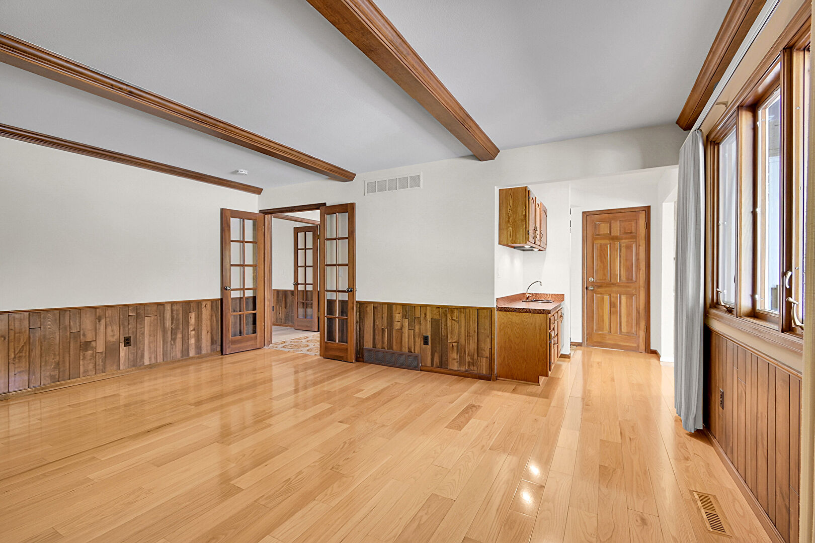 Baseboards Wall,  Drywall,  French Doors,  Vent,  Wainscot Wall,  Wood Finish Floor, Wood Wall