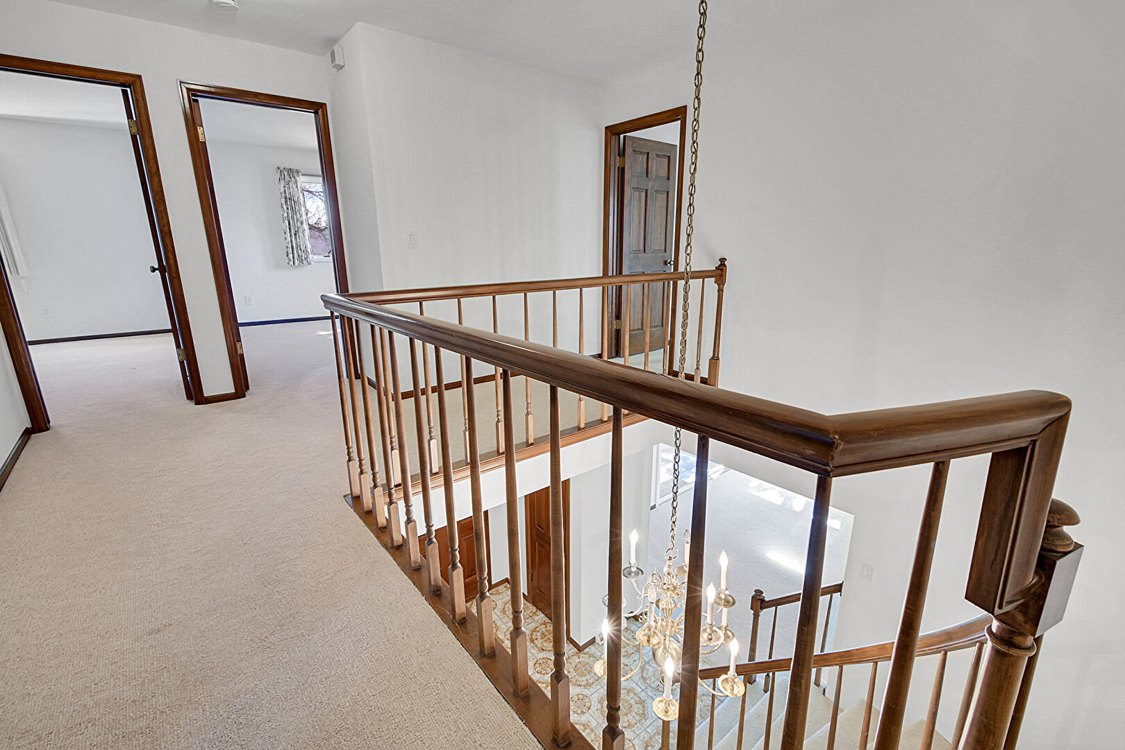 Baseboards Wall,  Carpet,  Drywall,  Notable Chandelier, Upstairs Landing