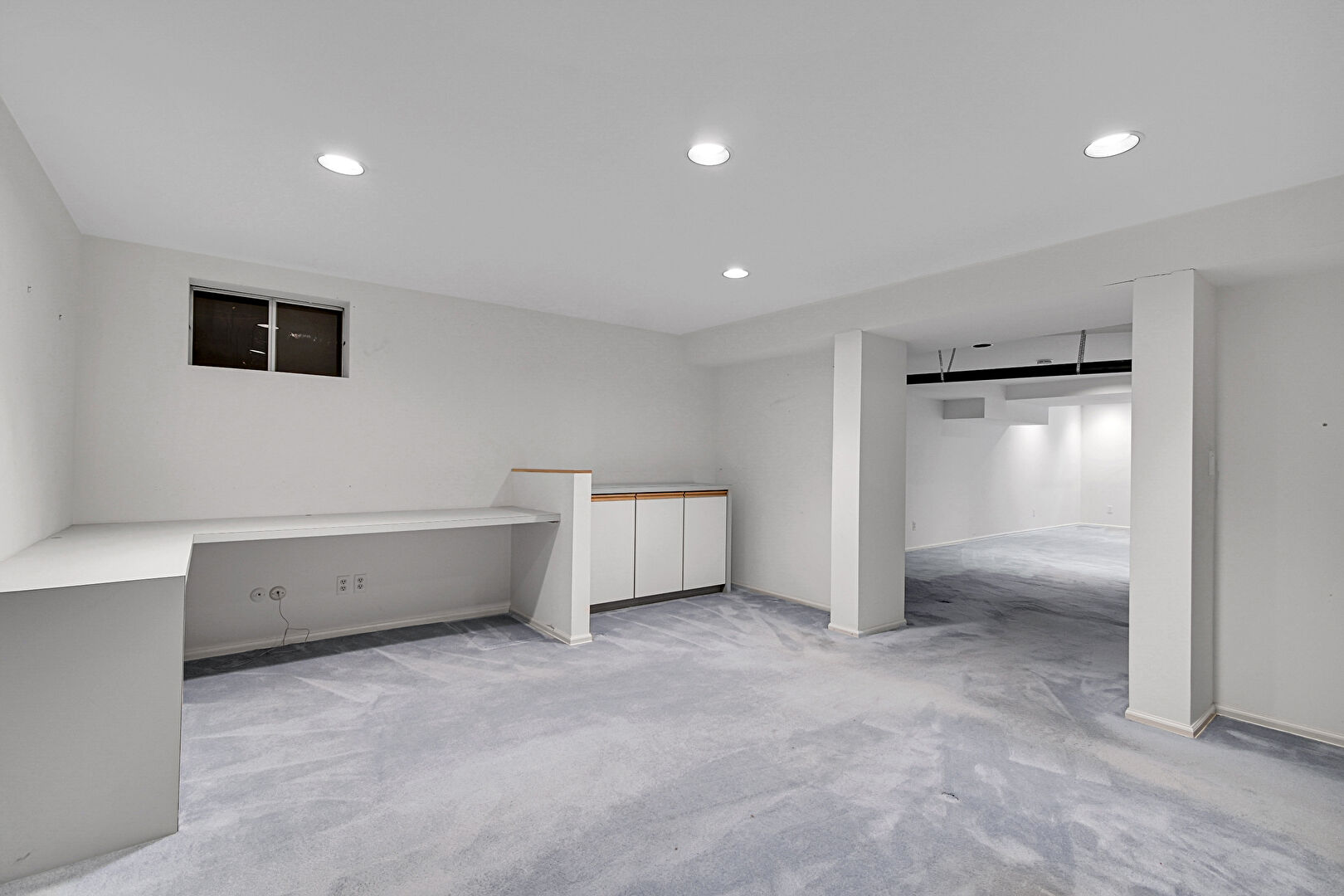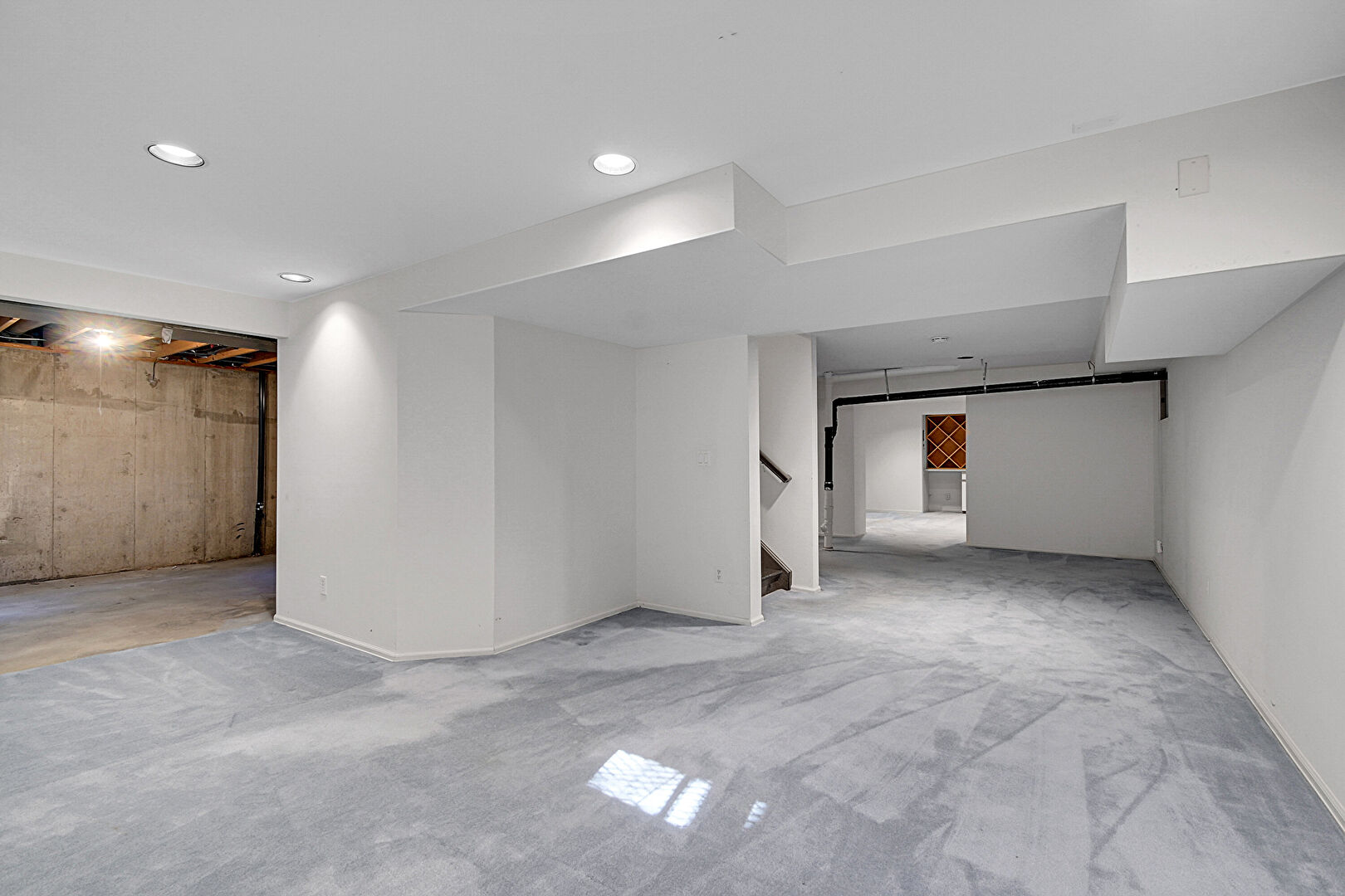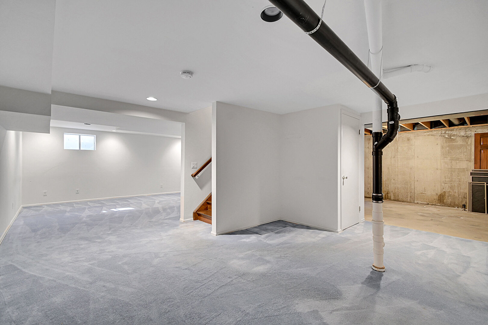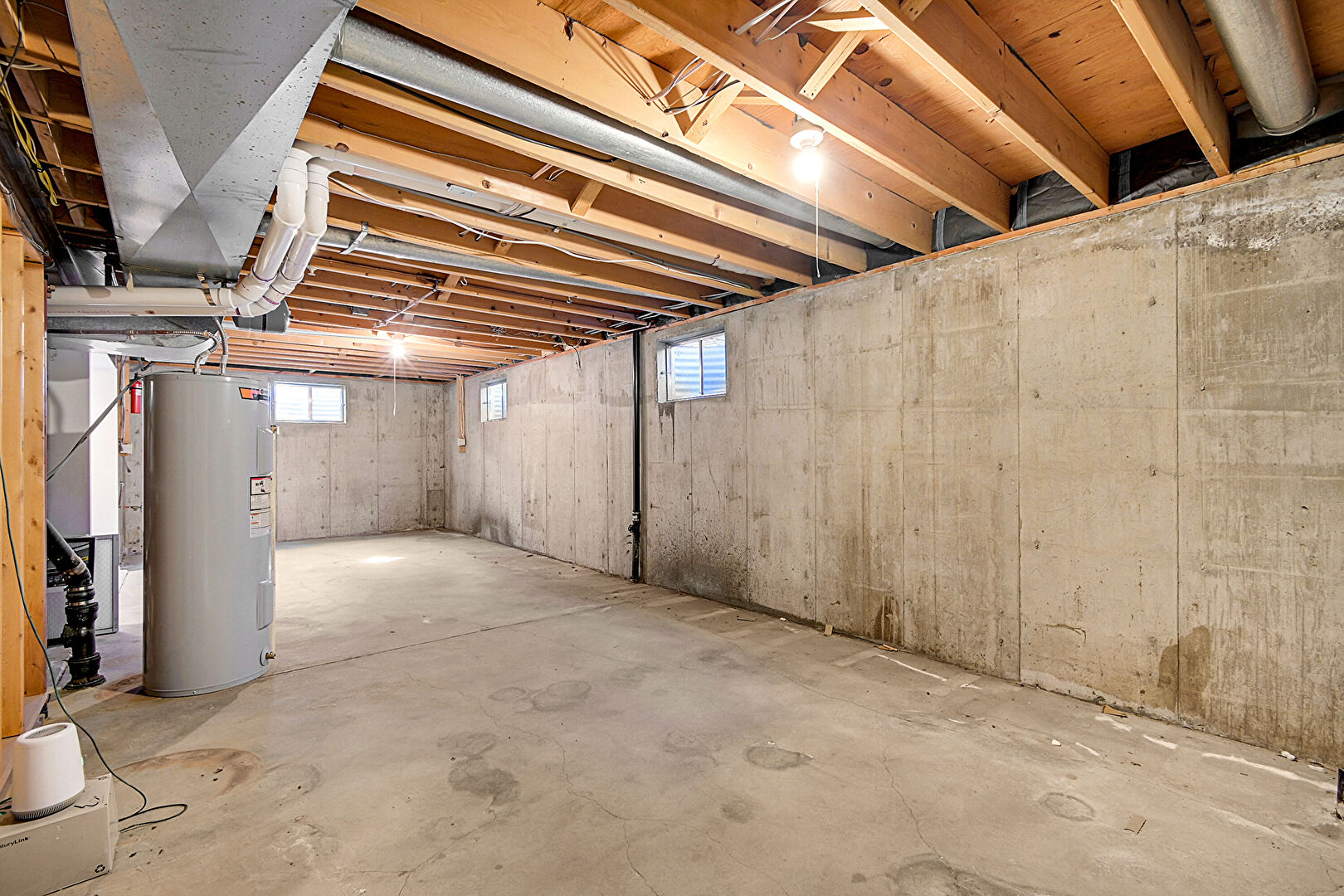 Baseboards Wall,  Basement,  Carpet,  Drywall,  Natural Light,  Recessed Lighting,  Stairs,  Water Heater, Basement, Concrete Foundation, Recessed Lighting