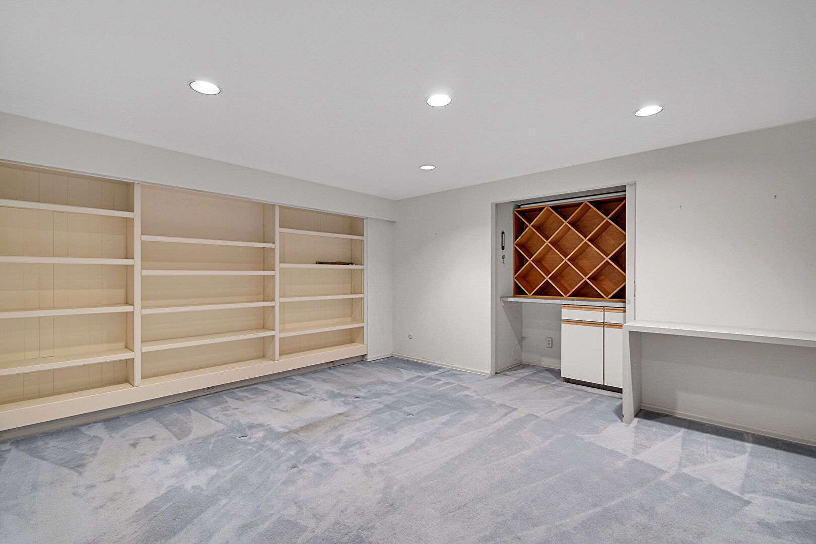 Baseboards Wall,  Built In Desk,  Built In Shelves,  Carpet,  Closet,  Drywall,  Natural Light,  Recessed Lighting,  Vent,  Wainscot Wall,  Walk In Closet,  Wood Finish Floor,  Wood Wall, Baseboards Wall, Carpet, Office Area, Two Closets, Vent