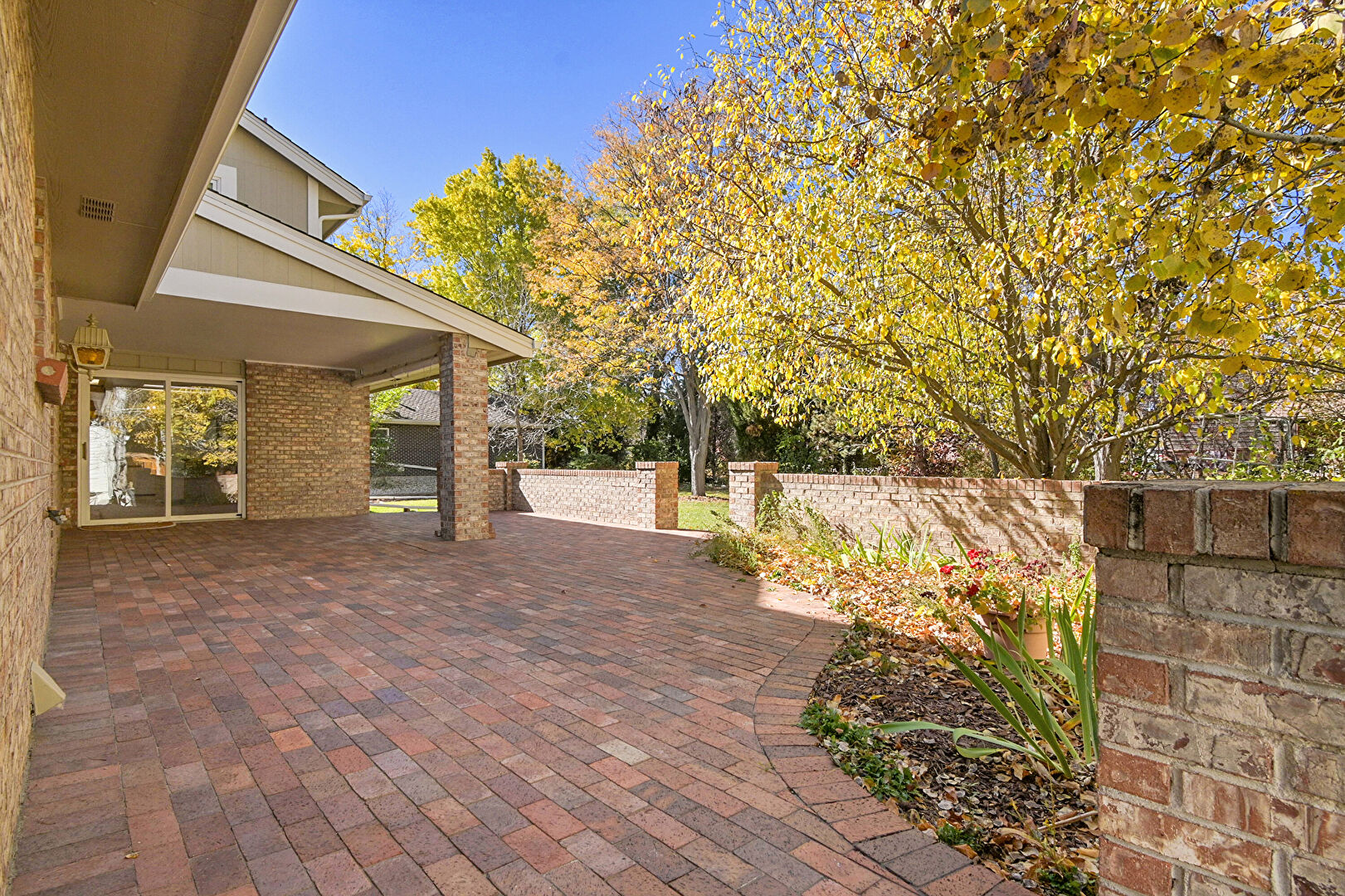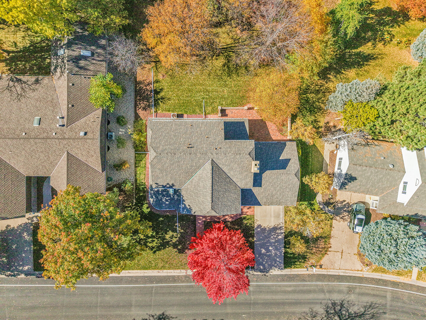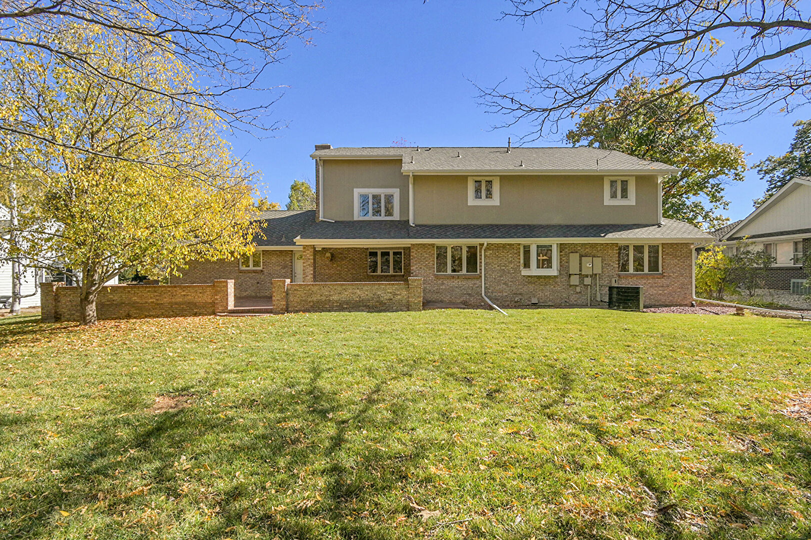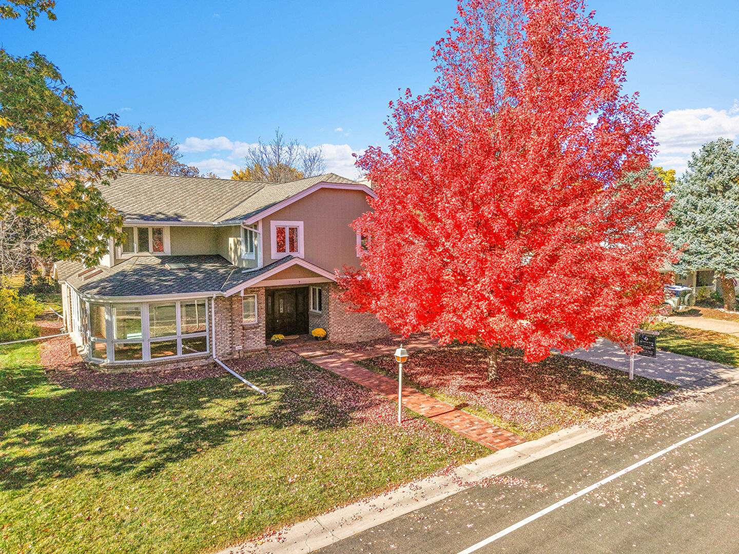 Brick Siding,  Chimney,  Downspout,  Driveway,  Gutters,  Lawn,  Shingle Roof,  Sunroom,  Vertical Siding, Brick Siding, Downspout, Lawn, Vertical Siding