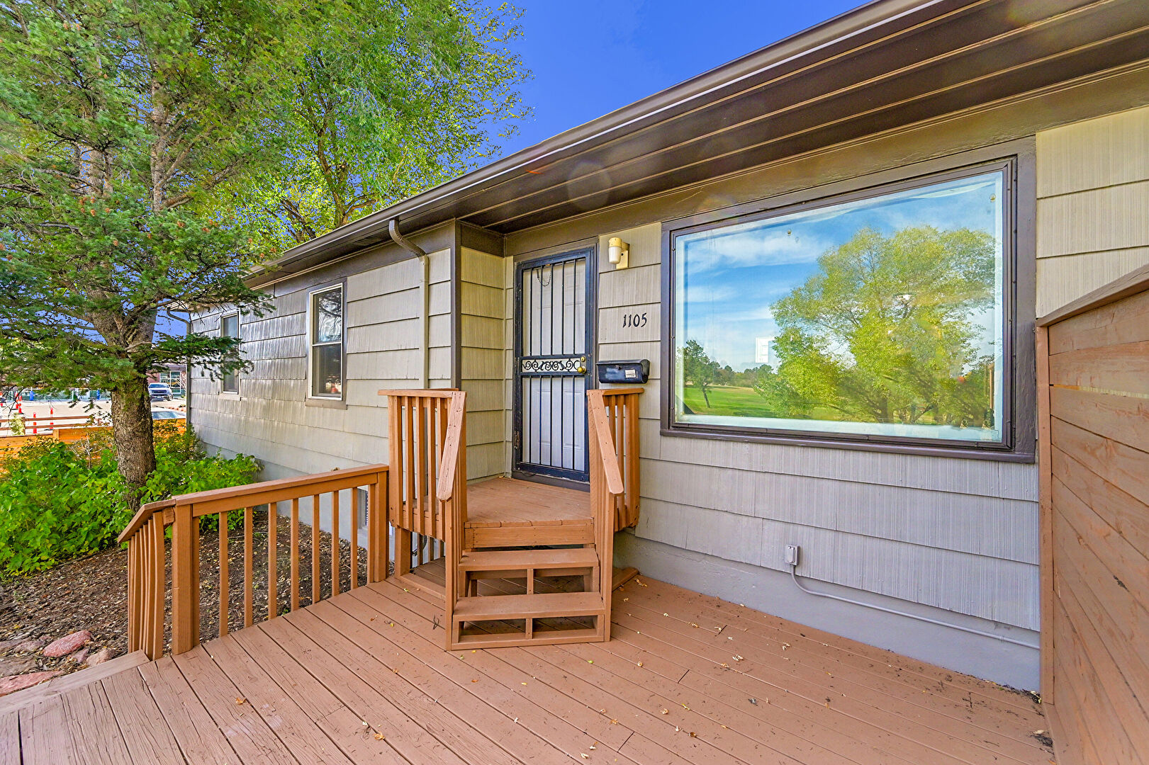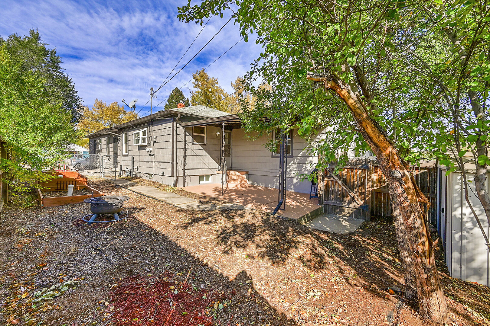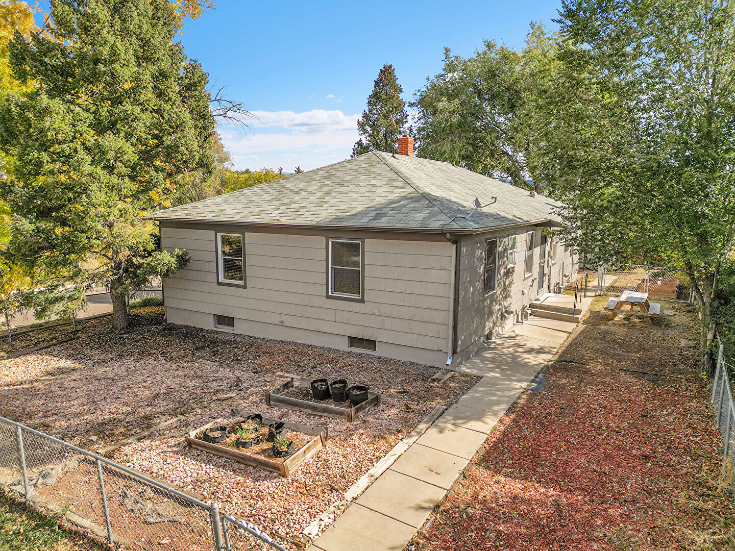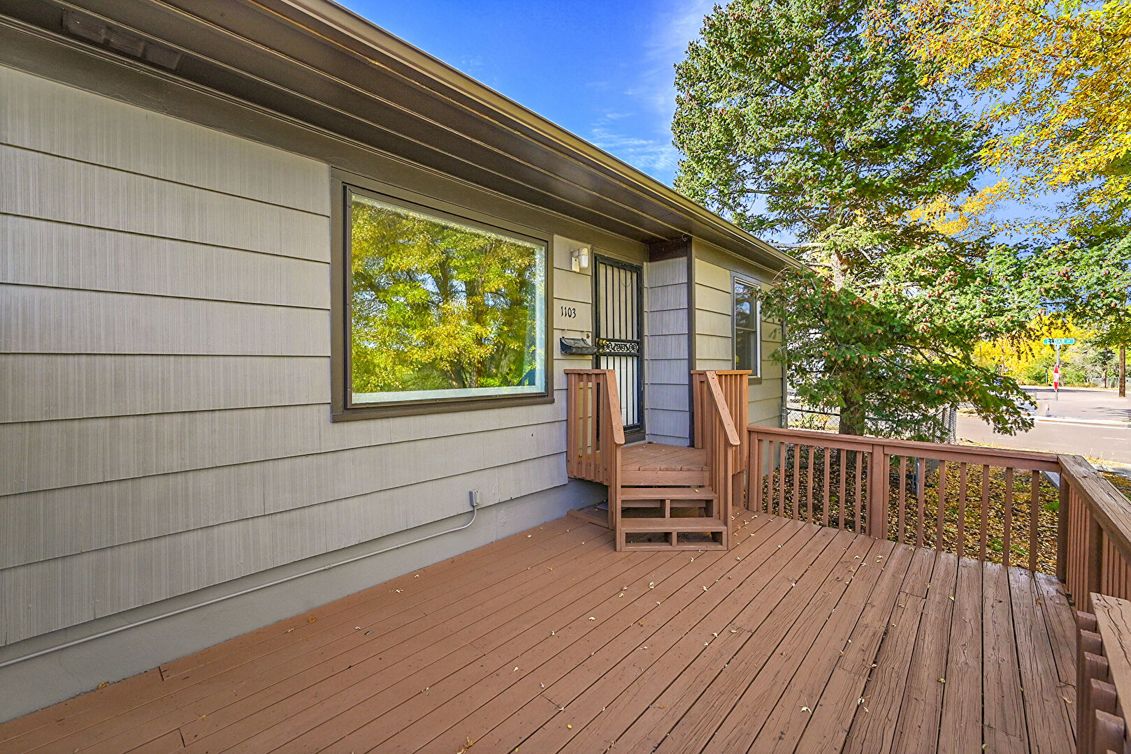Chimney, Concrete Foundation, Deck, Downspout, Fence, Garden, Gutters, Horizontal Siding, Mountain View, Shingle Roof, Stairs, Chimney, Deck, Stairs