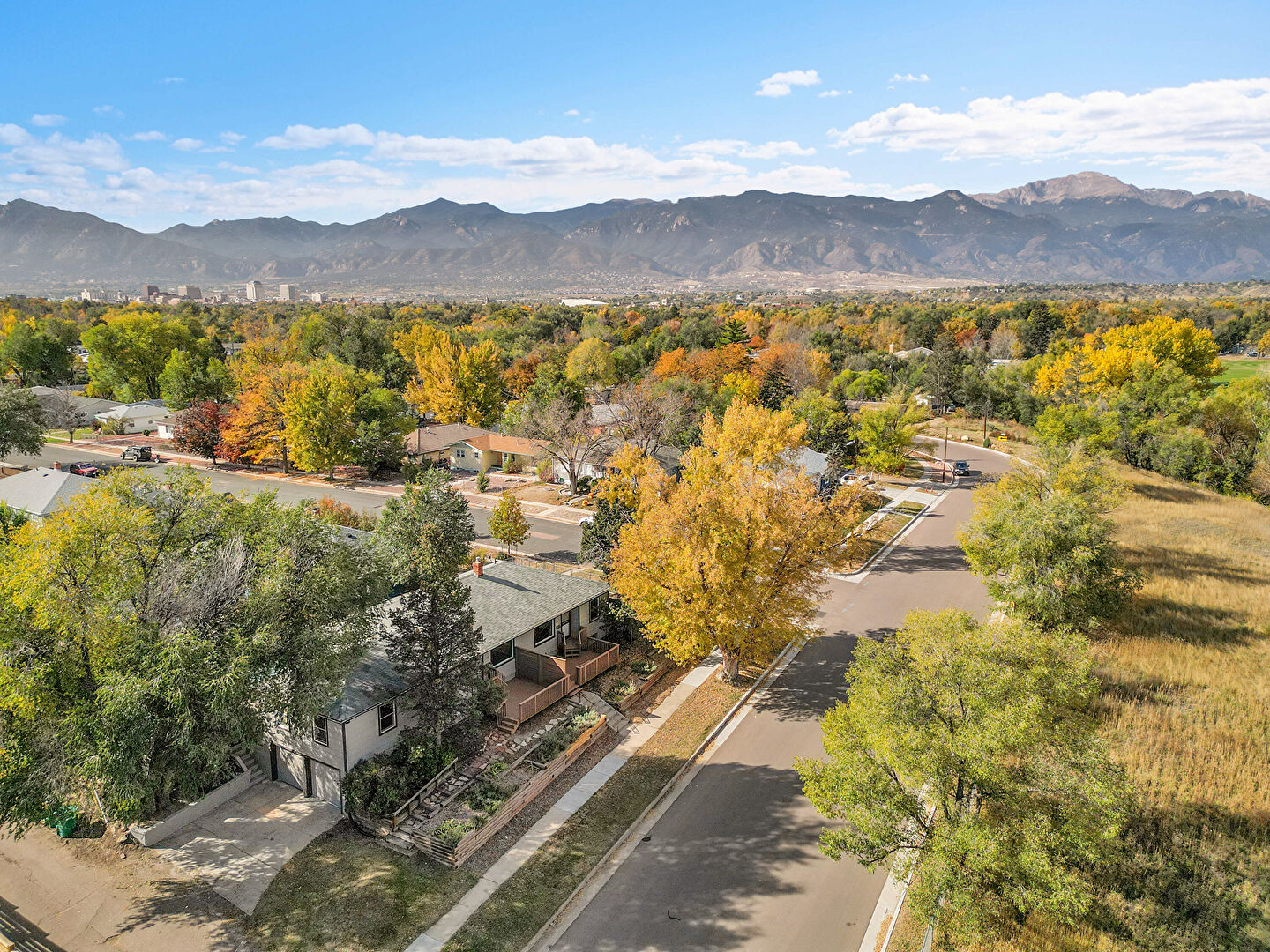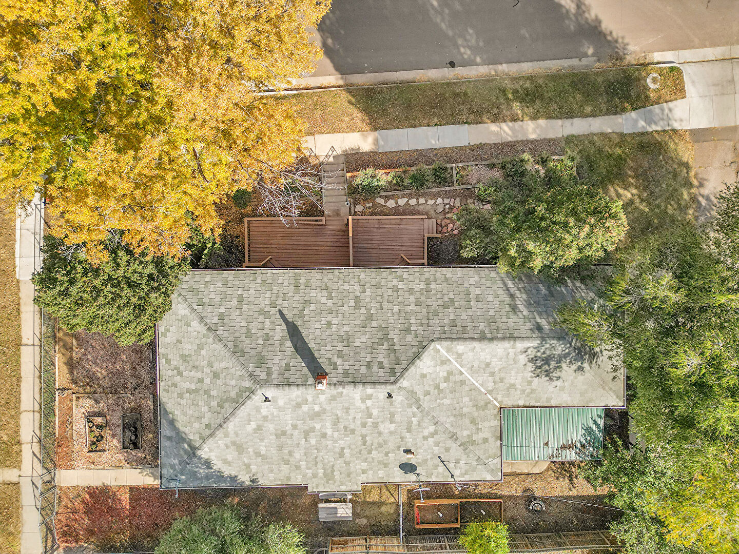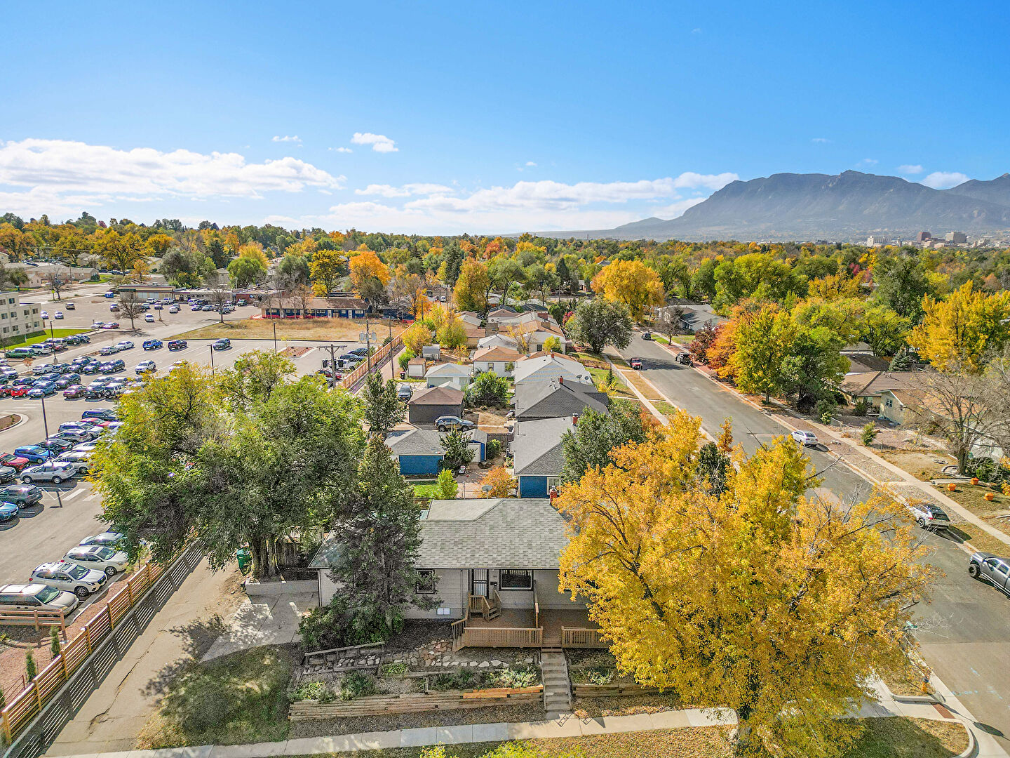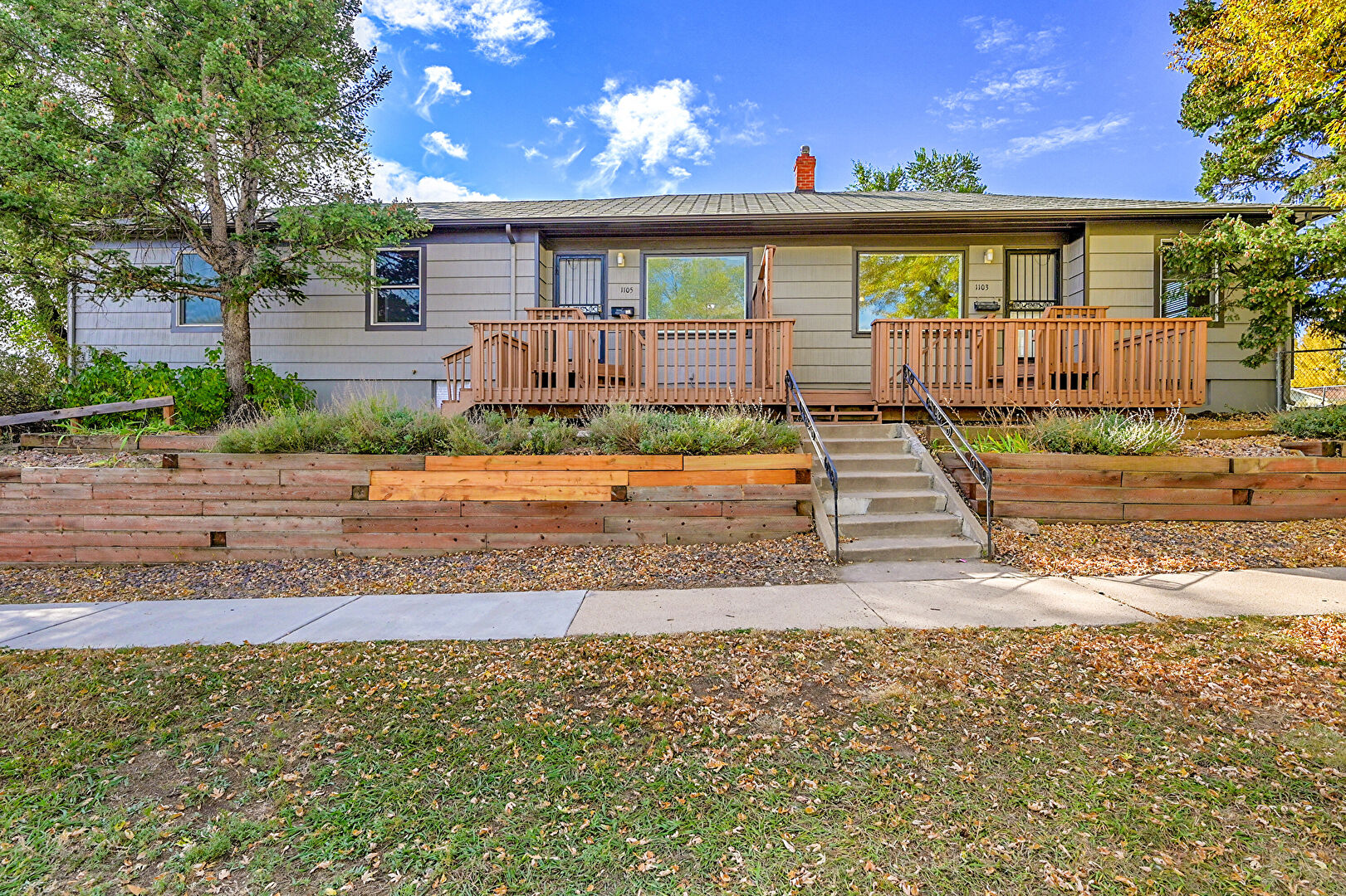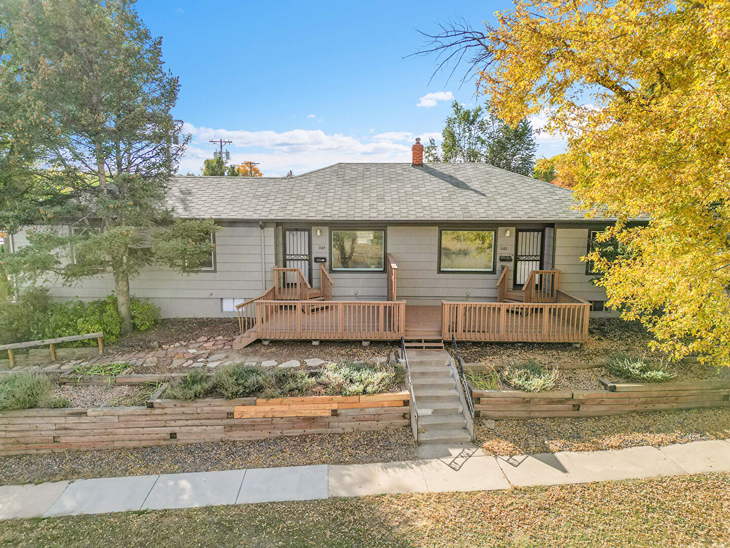 Chimney, Concrete Foundation, Deck, Downspout, Fence, Garden, Gutters, Horizontal Siding, Mountain View, Shingle Roof, Stairs, Chimney, Deck, Stairs