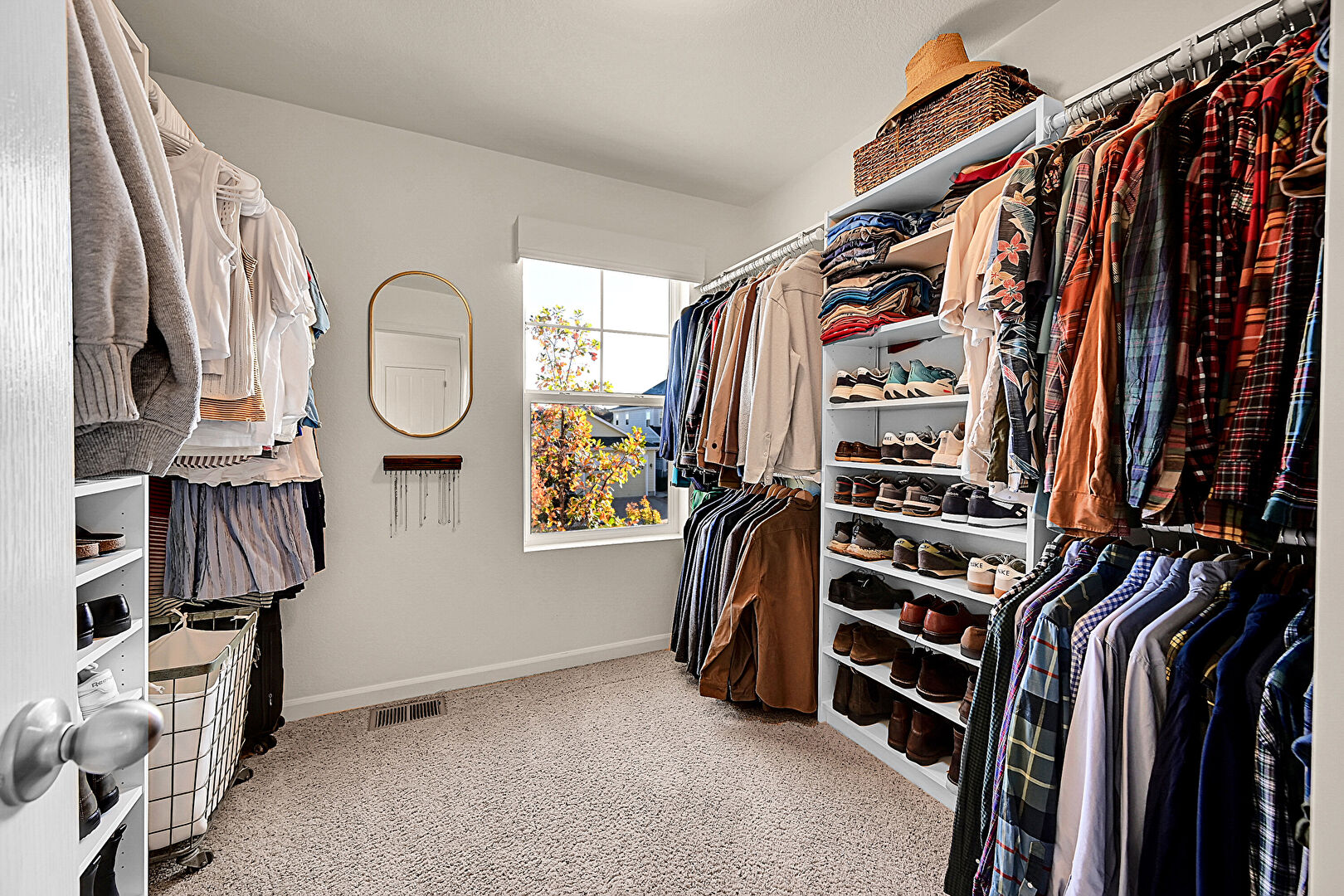 Baseboards Wall, Closet, Double Vanity, Drywall, Full Bathroom, Natural Light, Recessed Lighting, Tile Floor, Vent, Drywall, Tile Floor