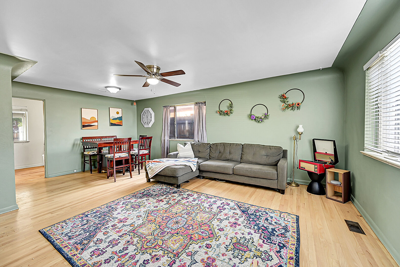 Baseboards Wall, Ceiling Fan, Drywall, Natural Light, Vent, Wood Finish Floor, Baseboards Wall, Ceiling Fan
