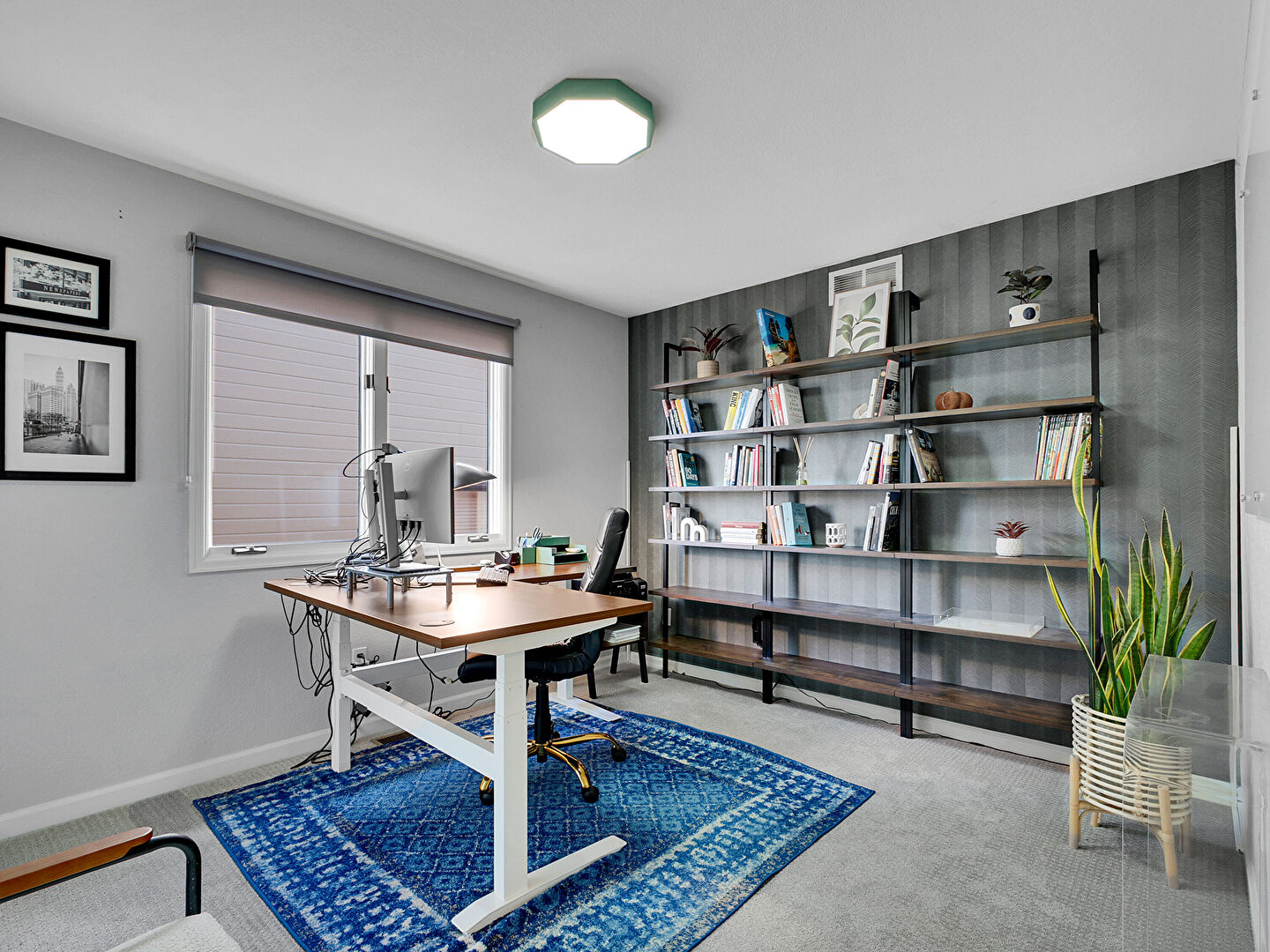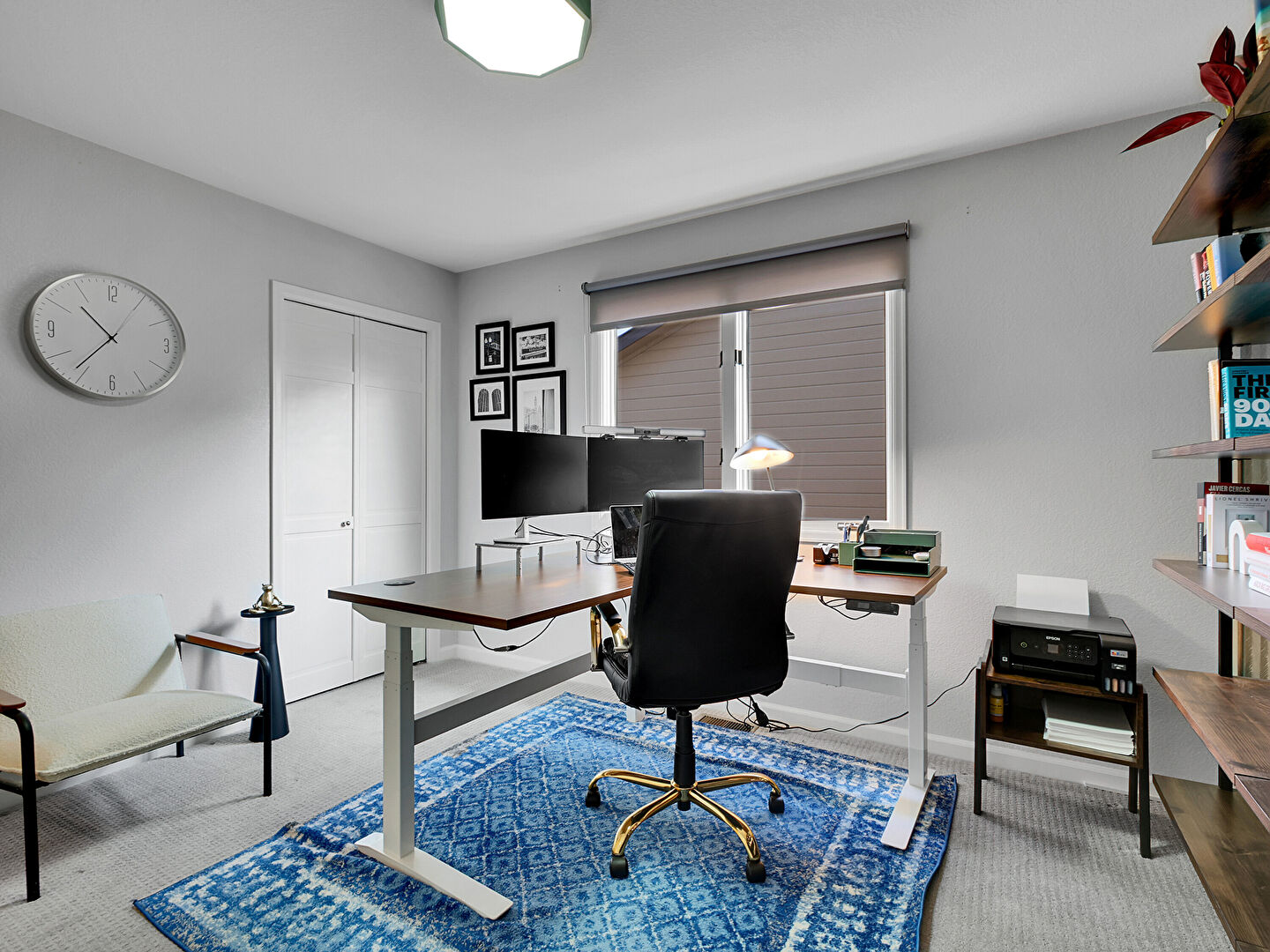 Accent Wall, Baseboards Wall, Carpet, Drywall, Natural Light, Office Area, Baseboards Wall, Office Area