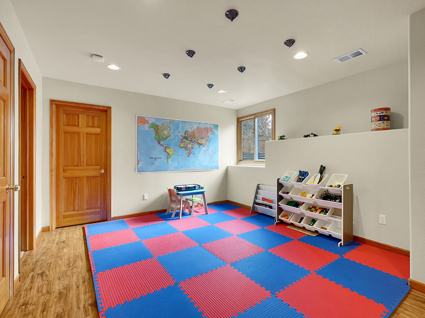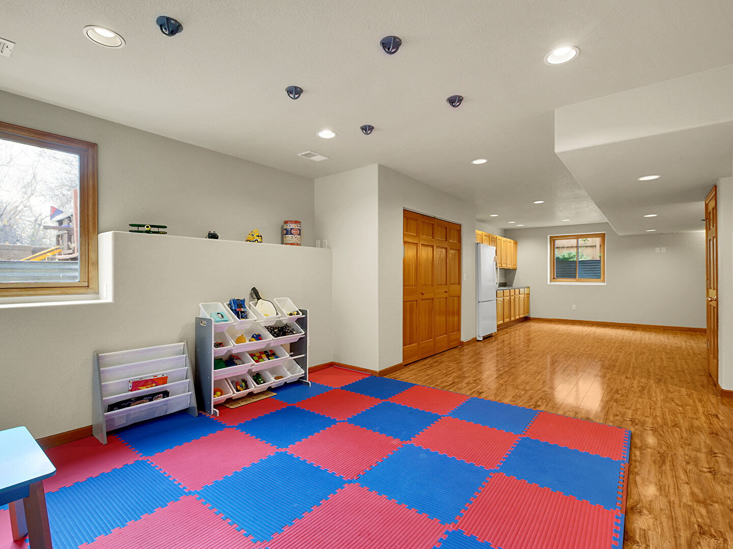 Baseboards Wall, Basement, Carpet, Natural Light, Recessed Lighting, Textured Ceiling, Textured Wall, Baseboards Wall, Textured Ceiling, Textured Wall